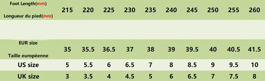 Ces tailles sont plus petites que la taille normale. Veuillez vous baser sur notre tableau des tailles (cm) et votre longueur de pied.