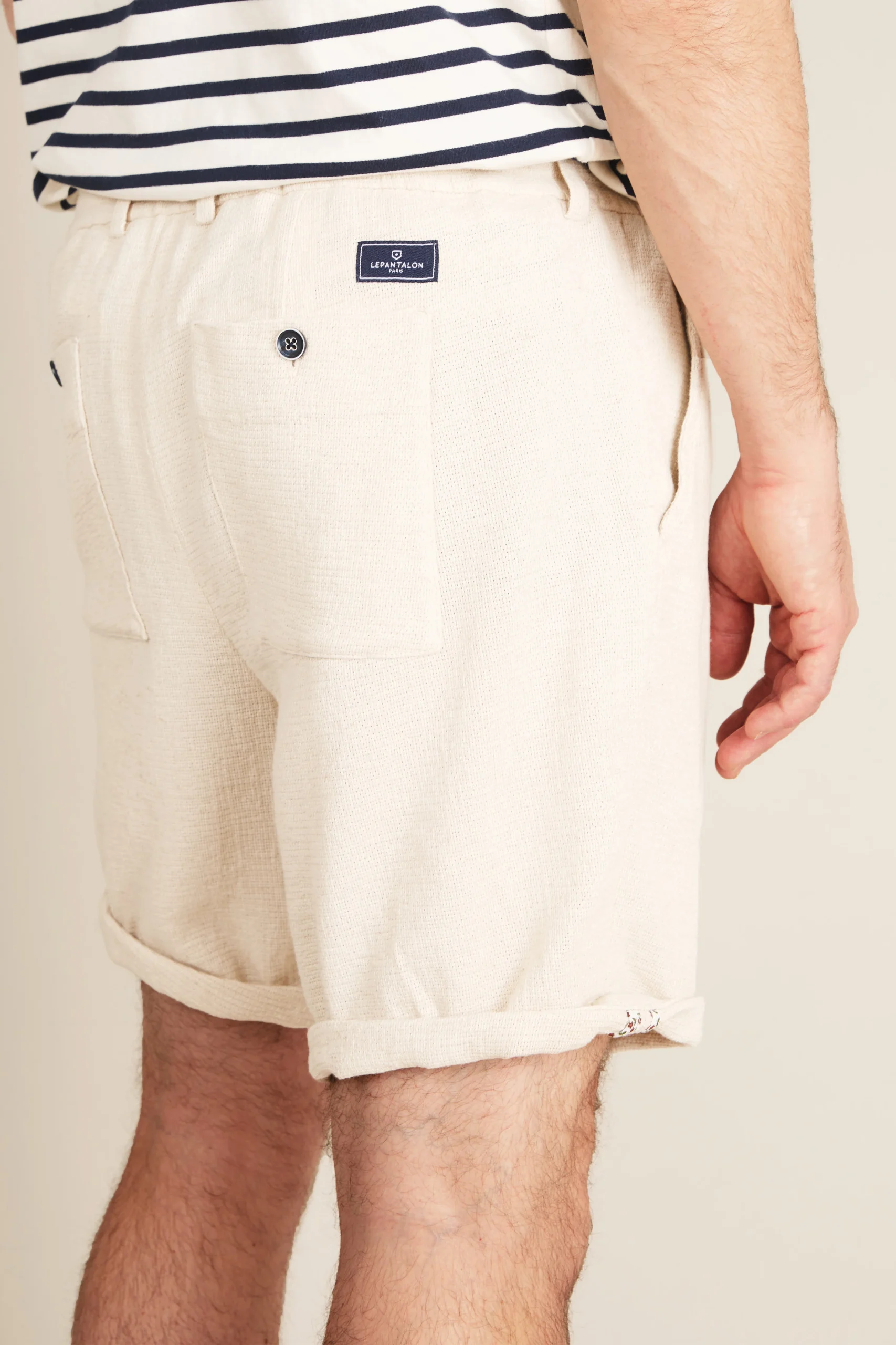 Le bermuda, c’est un indispensable de l’été. Ce modèle-ci à été pensé pour vos vacances ensoleillées, en sortie de plage ou autre moment de détente : avec sa matière respirante et confortable, son cordon de serrage et sa taille élastiquée, il coche toutes les cases pour une allure décontractée. Petit plus : ce bermuda n’a pas été teint, ce qui donne cette jolie couleur beige naturelle et ce léger côté chiné, mais aussi permet un impact environnemental raisonné.
