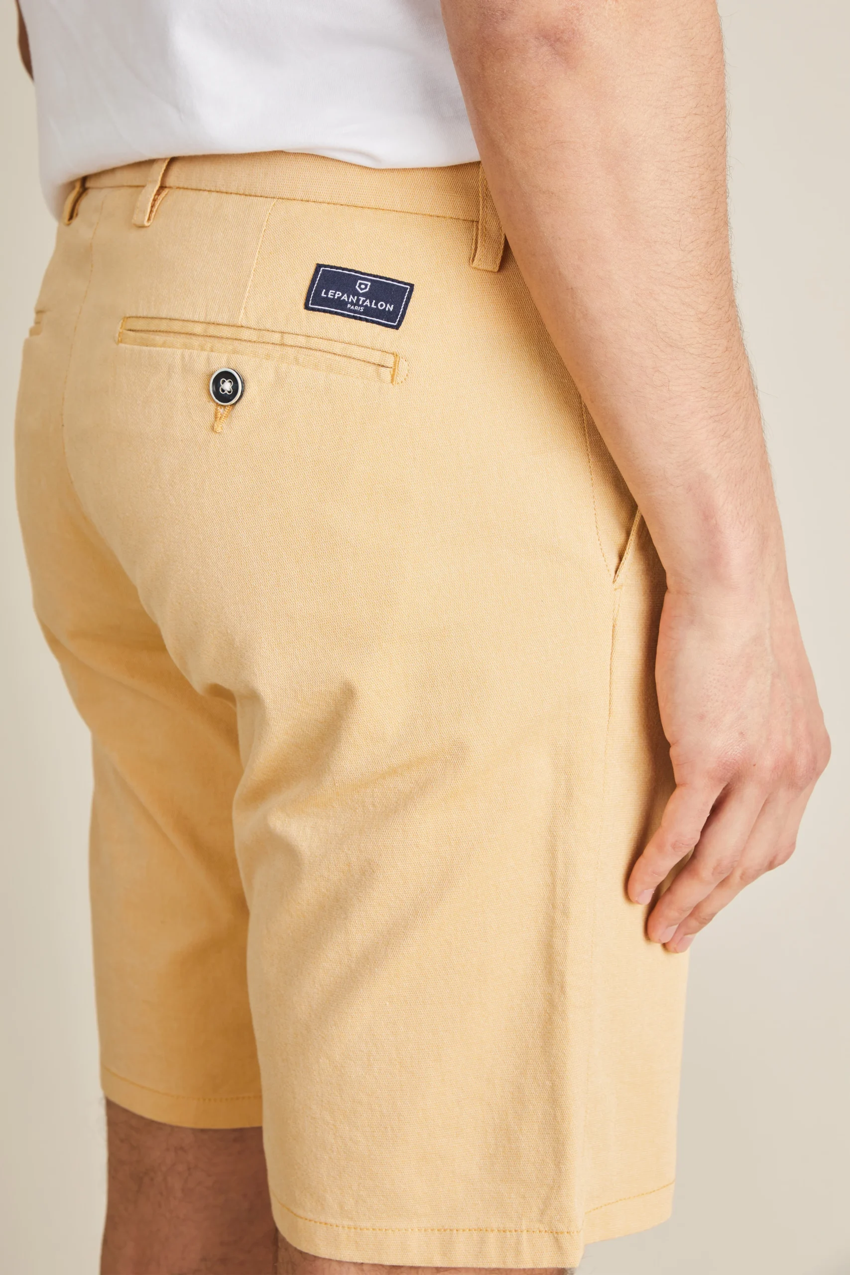 Le chino est notre spécialité. Après 10 ans de savoir-faire et d’améliorations continues, nous avons perfectionné la recette de notre chino idéal, et vous proposons sa version courte Bermuda. Une fois votre taille trouvée, laissez-vous tenter par notre palette de couleurs et de matières, toutes pensées pour être faciles à porter au quotidien. Contrairement à ce que l’on pourrait croire : « Moins de tissu » ne signifie pas « moins de travail ». Chaque détail compte : finitions soignées, couture précise, équilibre parfait. Comme un pantalon, nos shorts demandent un savoir-faire minutieux, car l’essentiel du travail se joue sur le haut de la pièce.