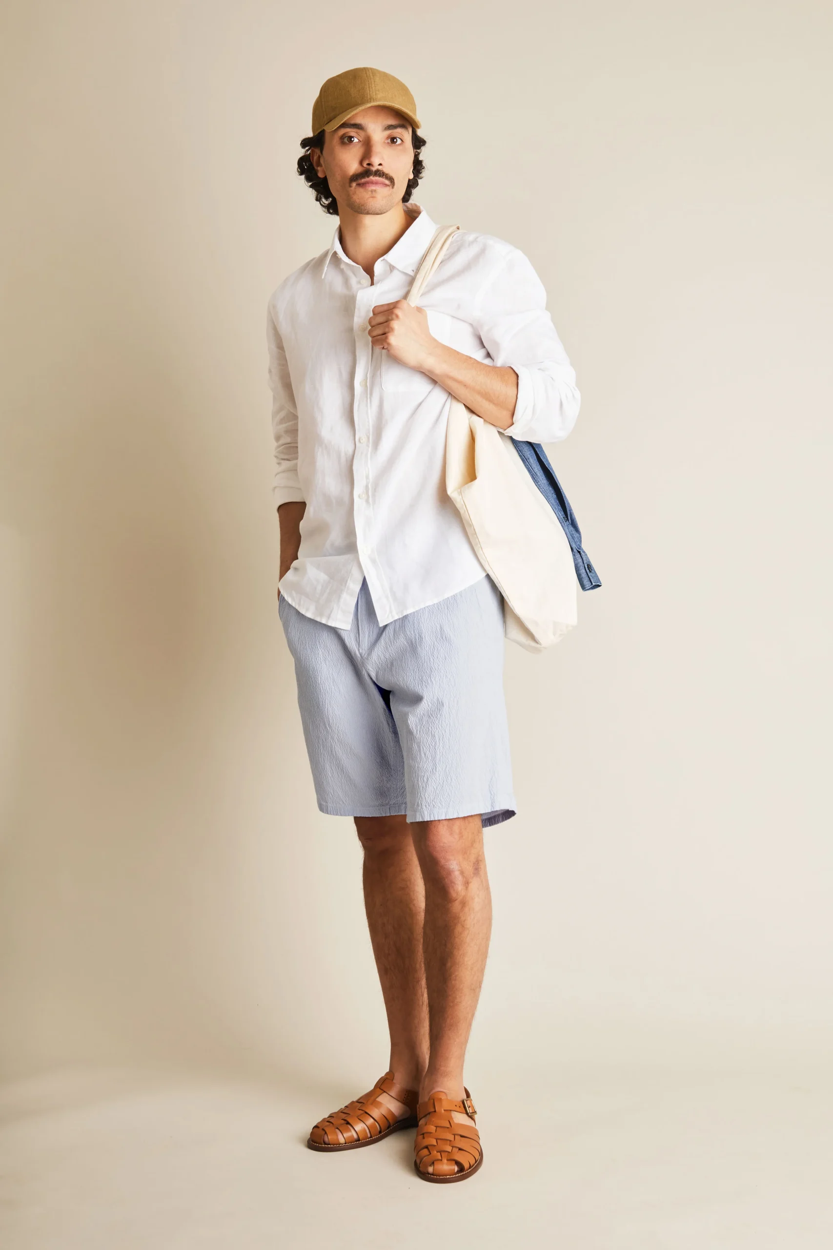 Le chino est notre spécialité. Après 10 ans de savoir-faire et d’améliorations continues, nous avons perfectionné la recette de notre chino idéal, et vous proposons sa version courte Bermuda. Une fois votre taille trouvée, laissez-vous tenter par notre palette de couleurs et de matières, toutes pensées pour être faciles à porter au quotidien. Contrairement à ce que l’on pourrait croire : « Moins de tissu » ne signifie pas « moins de travail ». Chaque détail compte : finitions soignées, couture précise, équilibre parfait. Comme un pantalon, nos shorts demandent un savoir-faire minutieux, car l’essentiel du travail se joue sur le haut de la pièce.