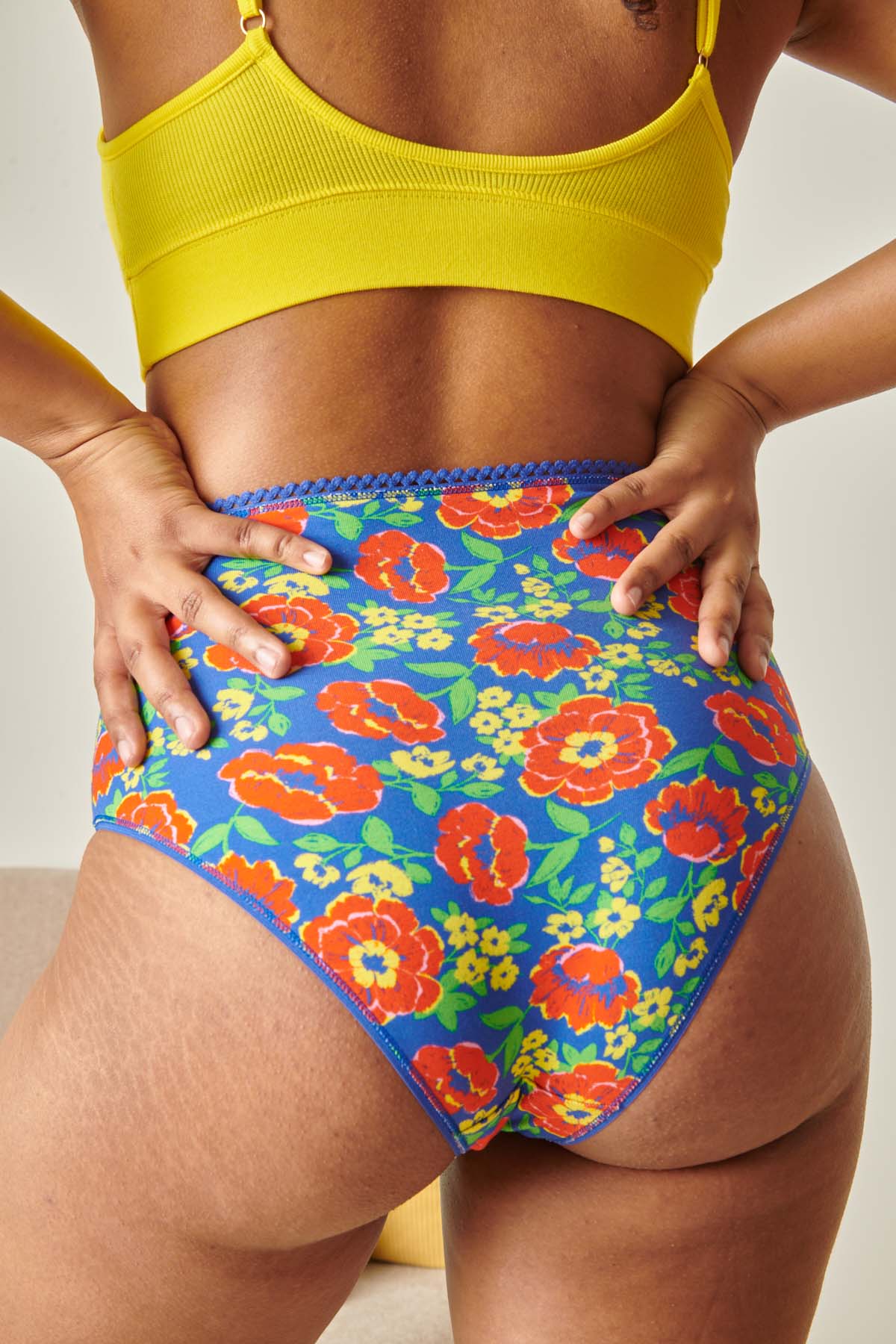 Petite précision (et pas des moindres) : on pourrait croire que sa forme fait des marques sous les pantalons mais QUE NENNI 🥰 ! Il peut effectivement se remarquer sous un pantalon large, car il ne se plaquera pas complètement, mais il sera aussi invisible qu’une culotte sous un pantalon moulant. Car oui, les coutures zigzag ne sont pas uniquement faites pour résister à l’usure du temps : les fronces s’aplatissent sous vos vêtements, et le bloomer devient alors tout aussi discret qu’une culotte classique. 👌