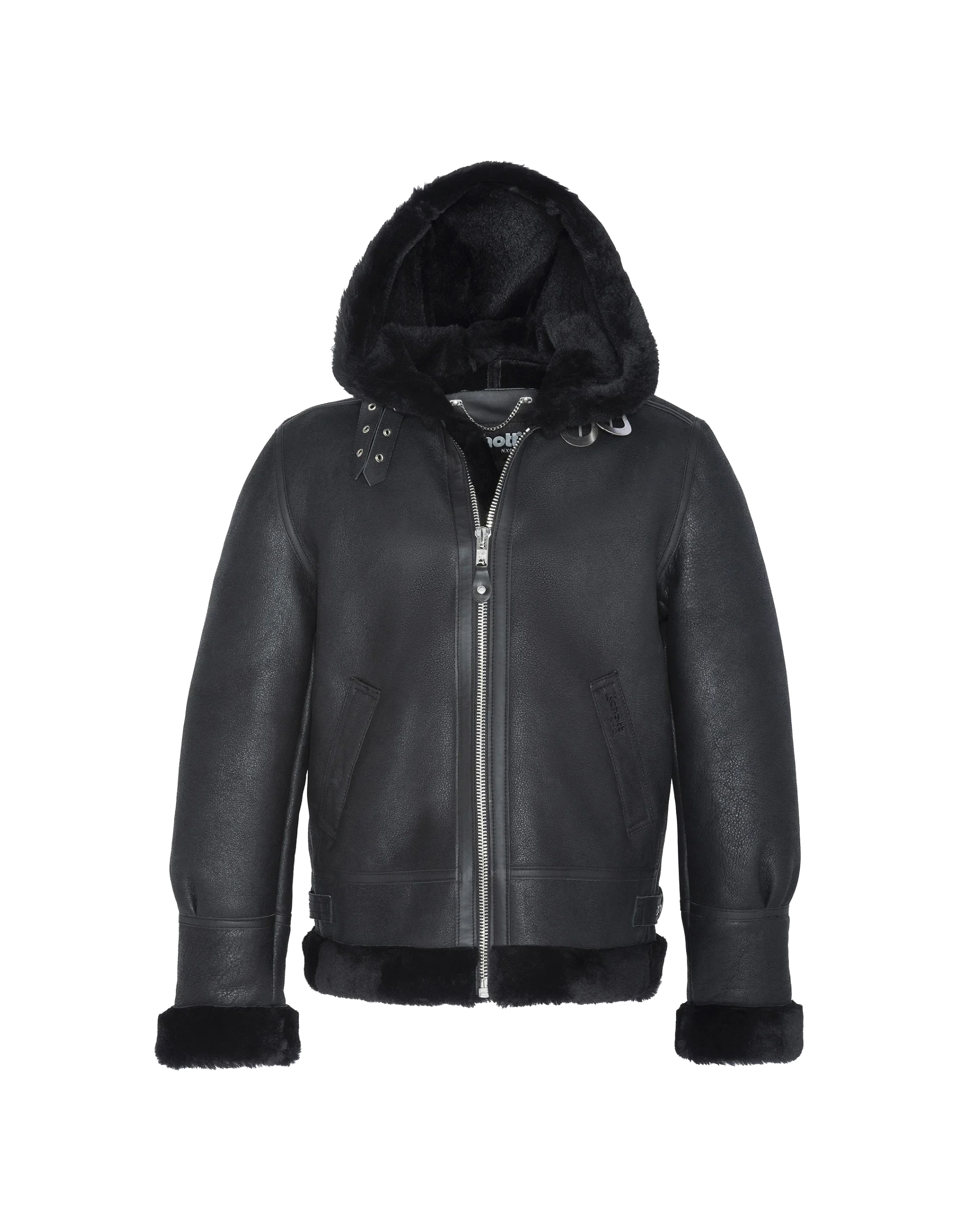 Ce bombardier B-3 à capuche fait directement référence à l’armée américaine. Il est conçu en peau lainée et doté d’un col généreux, qui permet une isolation hautement efficace. Son cuir à l’aspect vieilli lui donne une dimension vintage.
