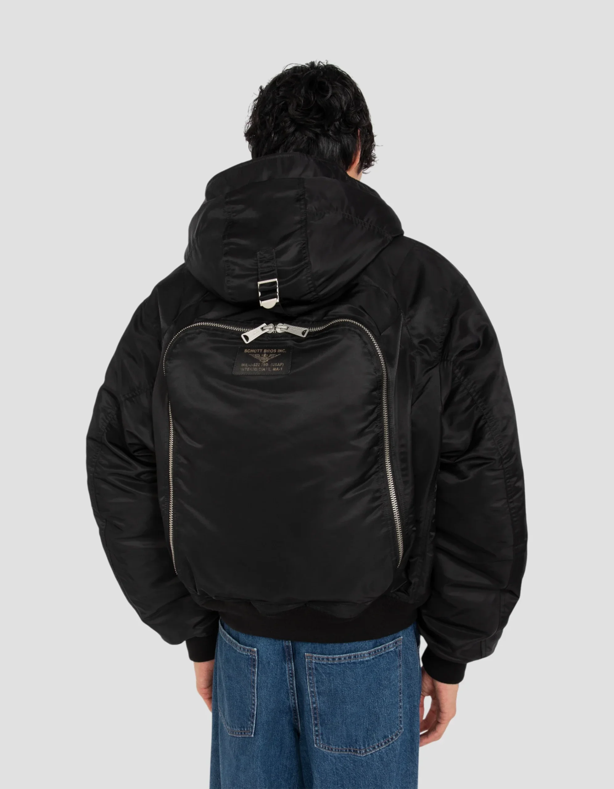Blouson bomber type N2B à capuche avec sac à dos intégré