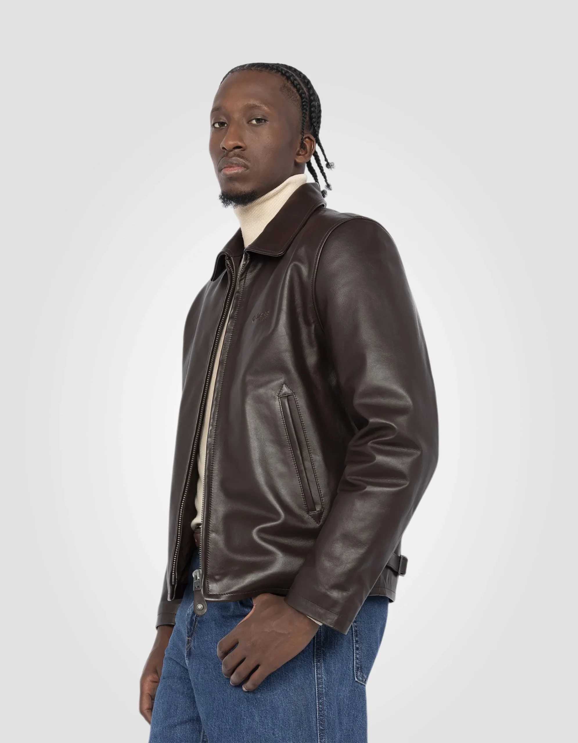 Simple et épuré, ce blouson en cuir demeure un classique au style décontracté.