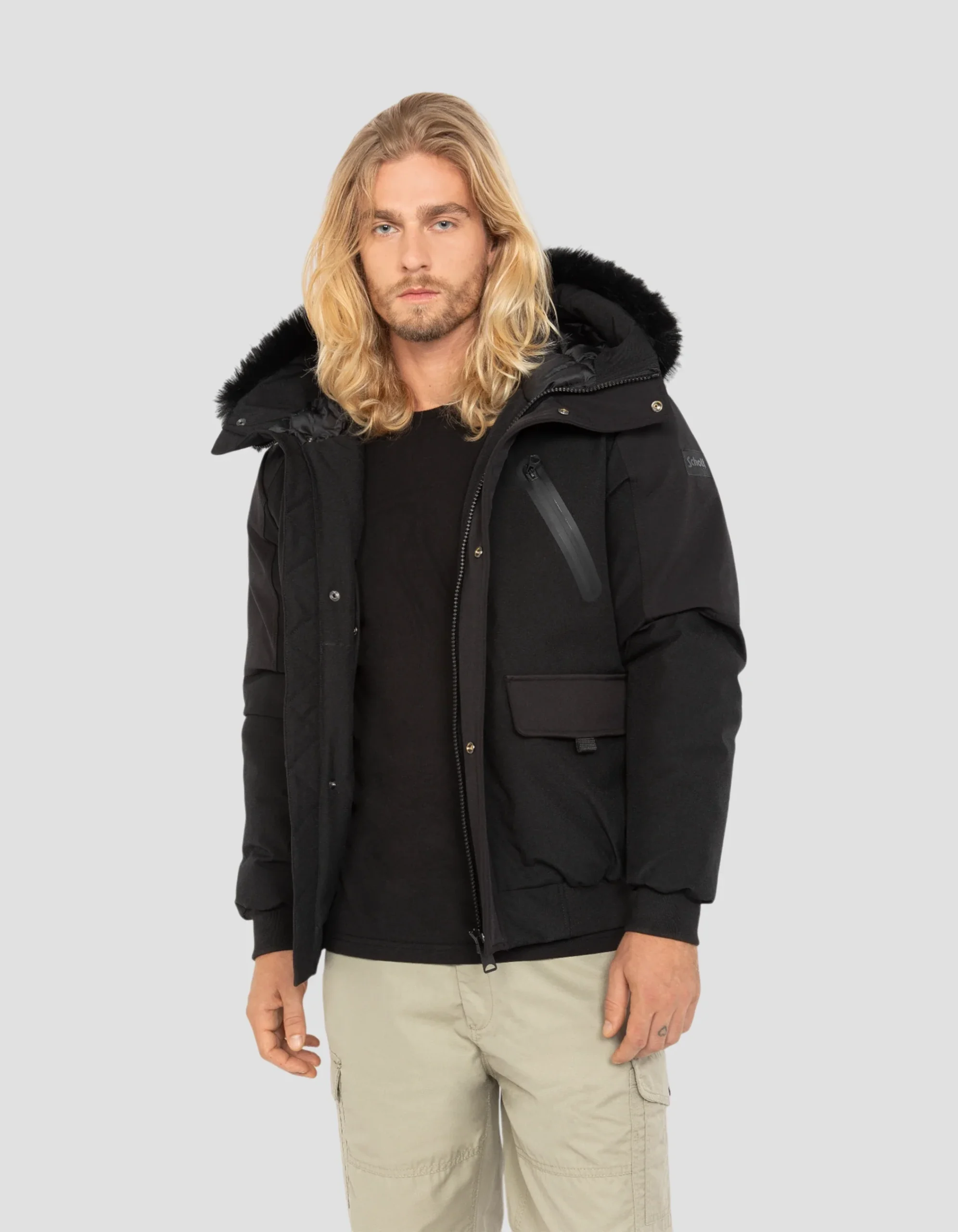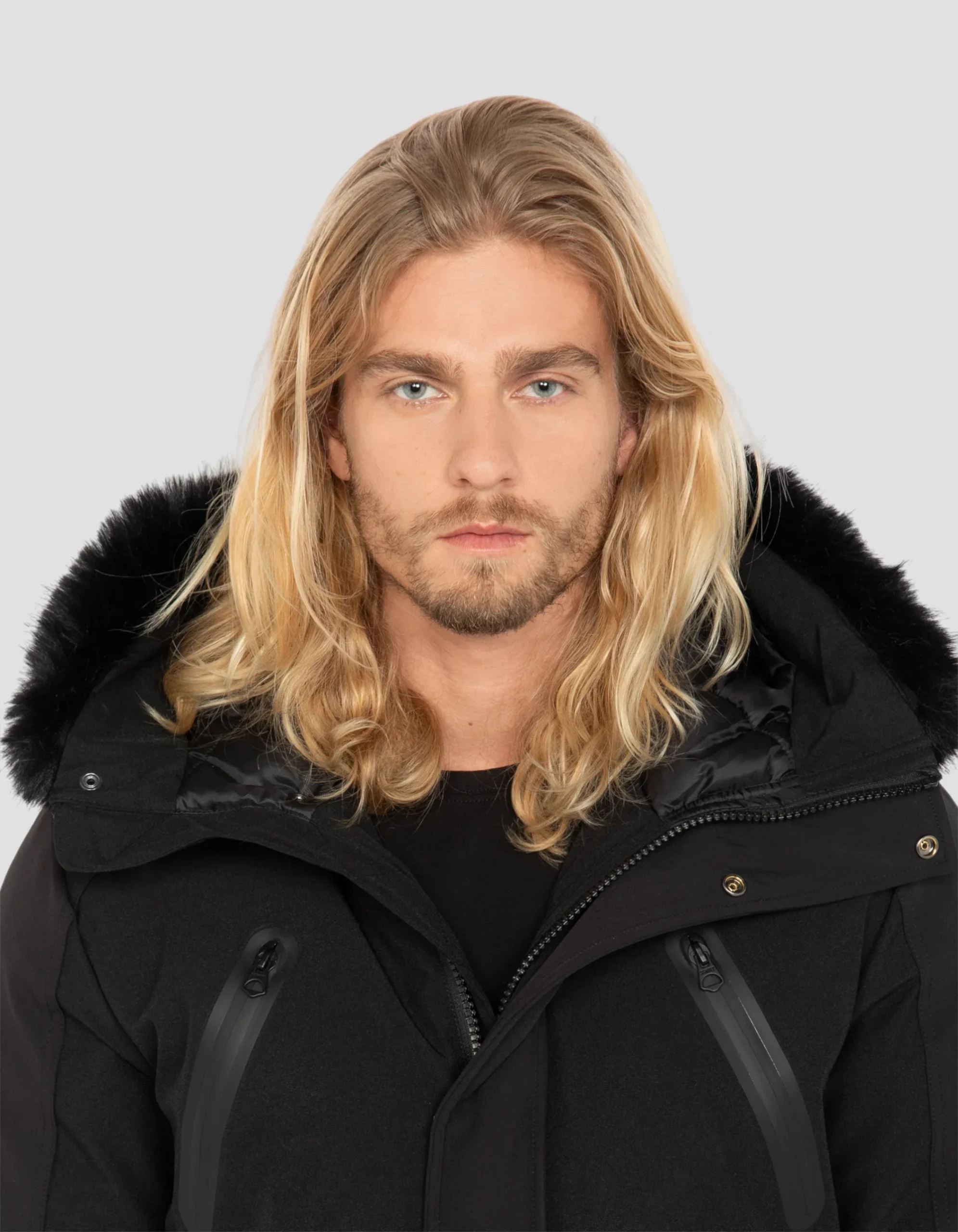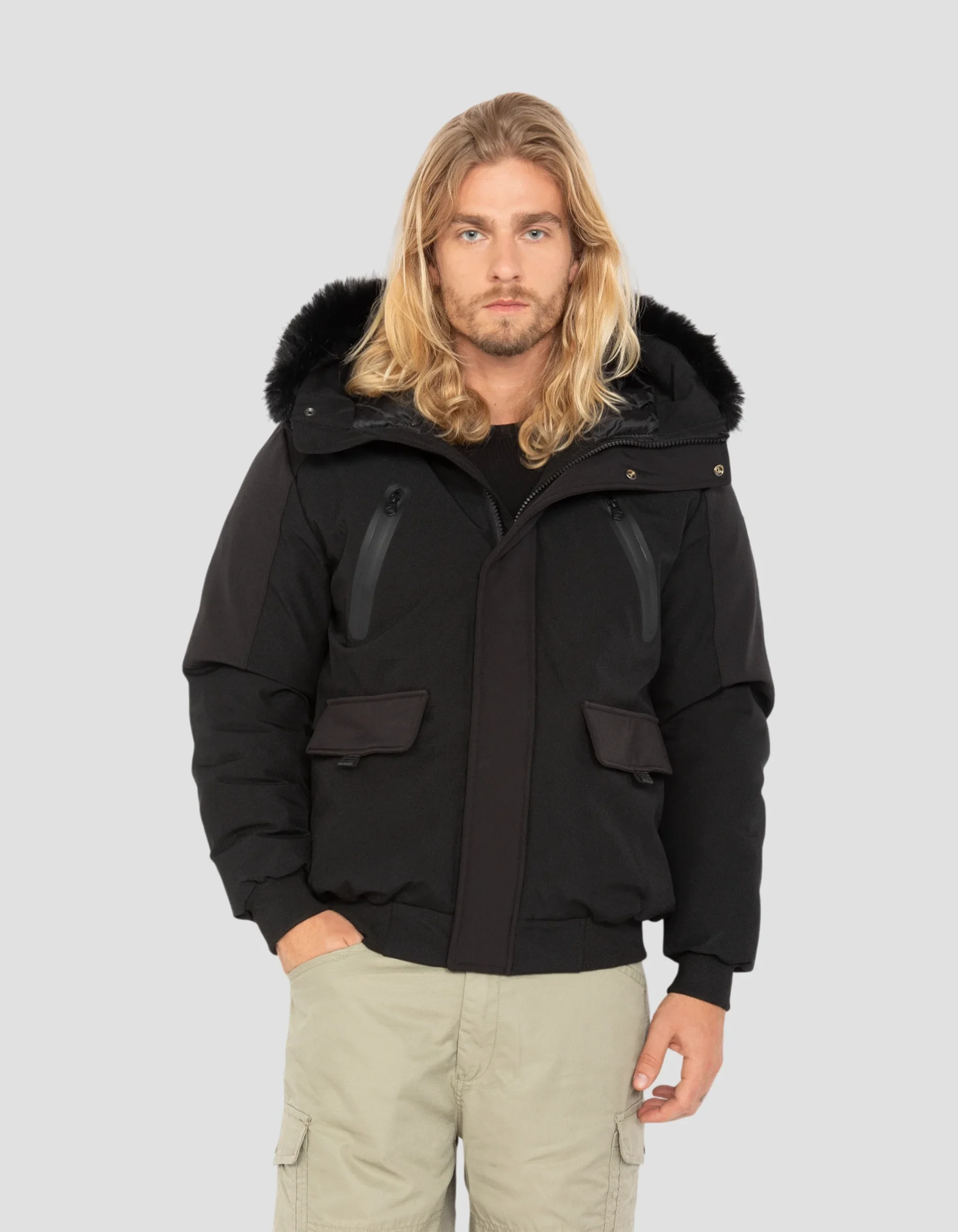- Capuche fixe avec fausse fourrure amovible