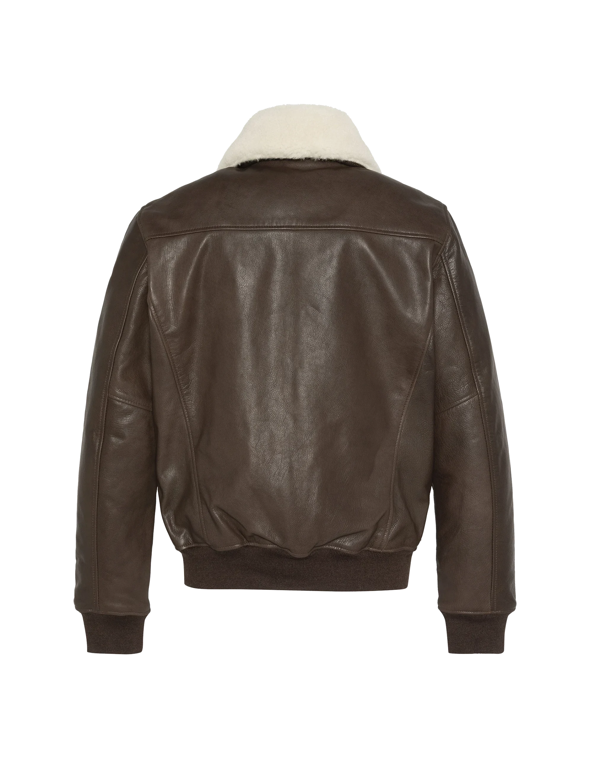 Blouson pilote avec col mouton amovible, cuir de vachette