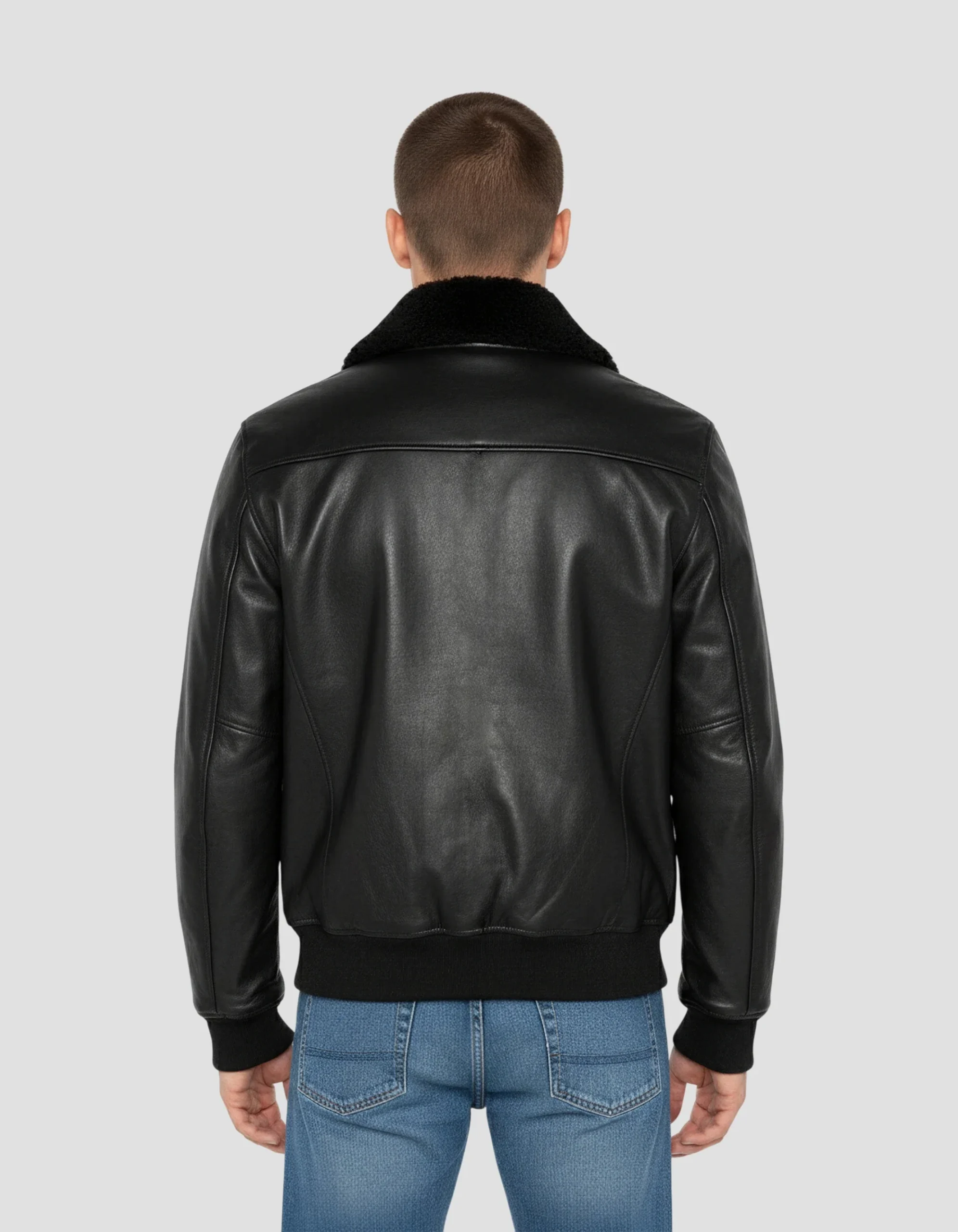 Blouson pilote avec col mouton amovible, cuir de vachette