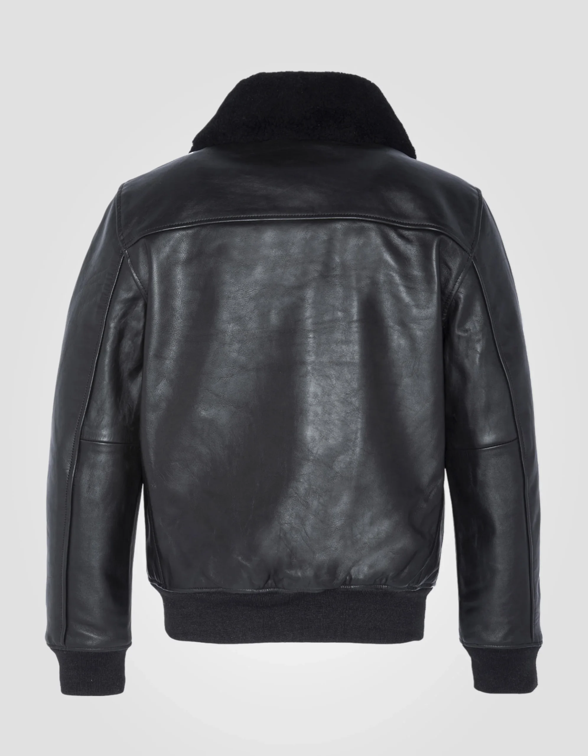 Ce blouson pilote en cuir épais de vachette, doté d’un col fourrure et d’un gilet amovible, sera parfait pour affronter l’hiver.