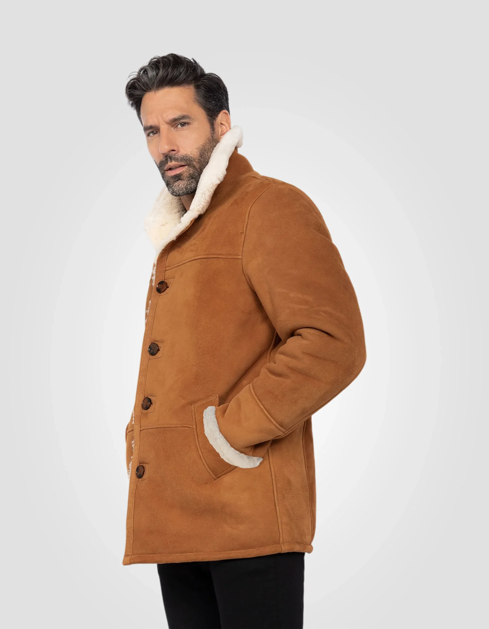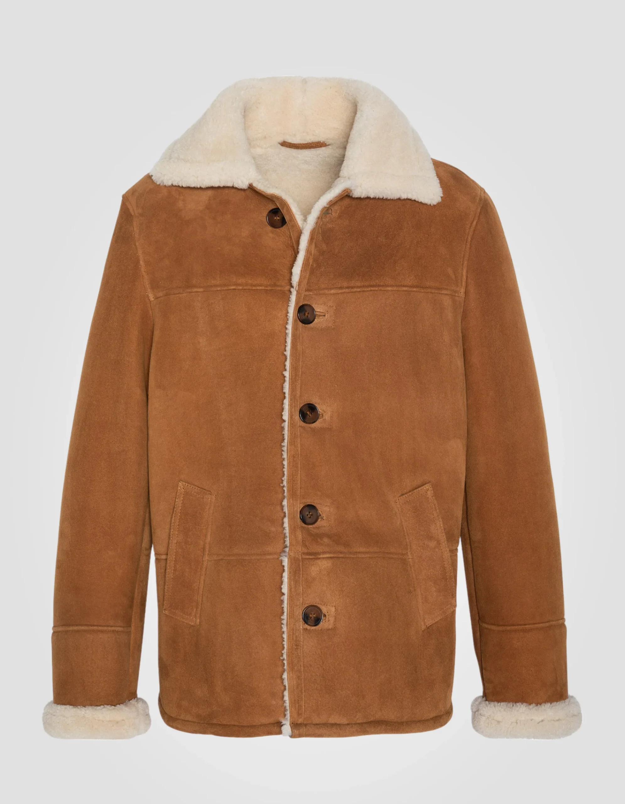 Ce blouson rancher en mouton suédé double face, robuste et chaud, s’inspire directement du style Western.