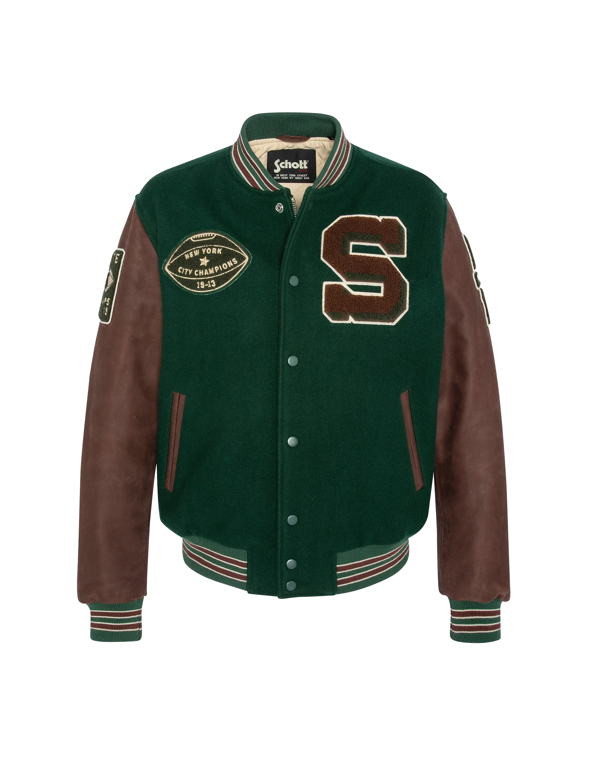 Indispensable du vestiaire Schott NYC®, optez pour ce teddy iconique qui reprend les codes du blouson varsity américain.