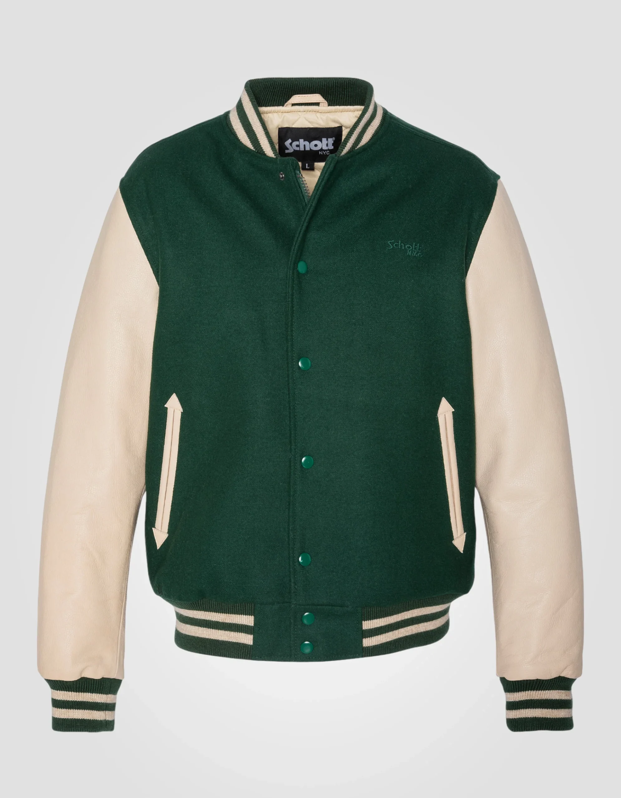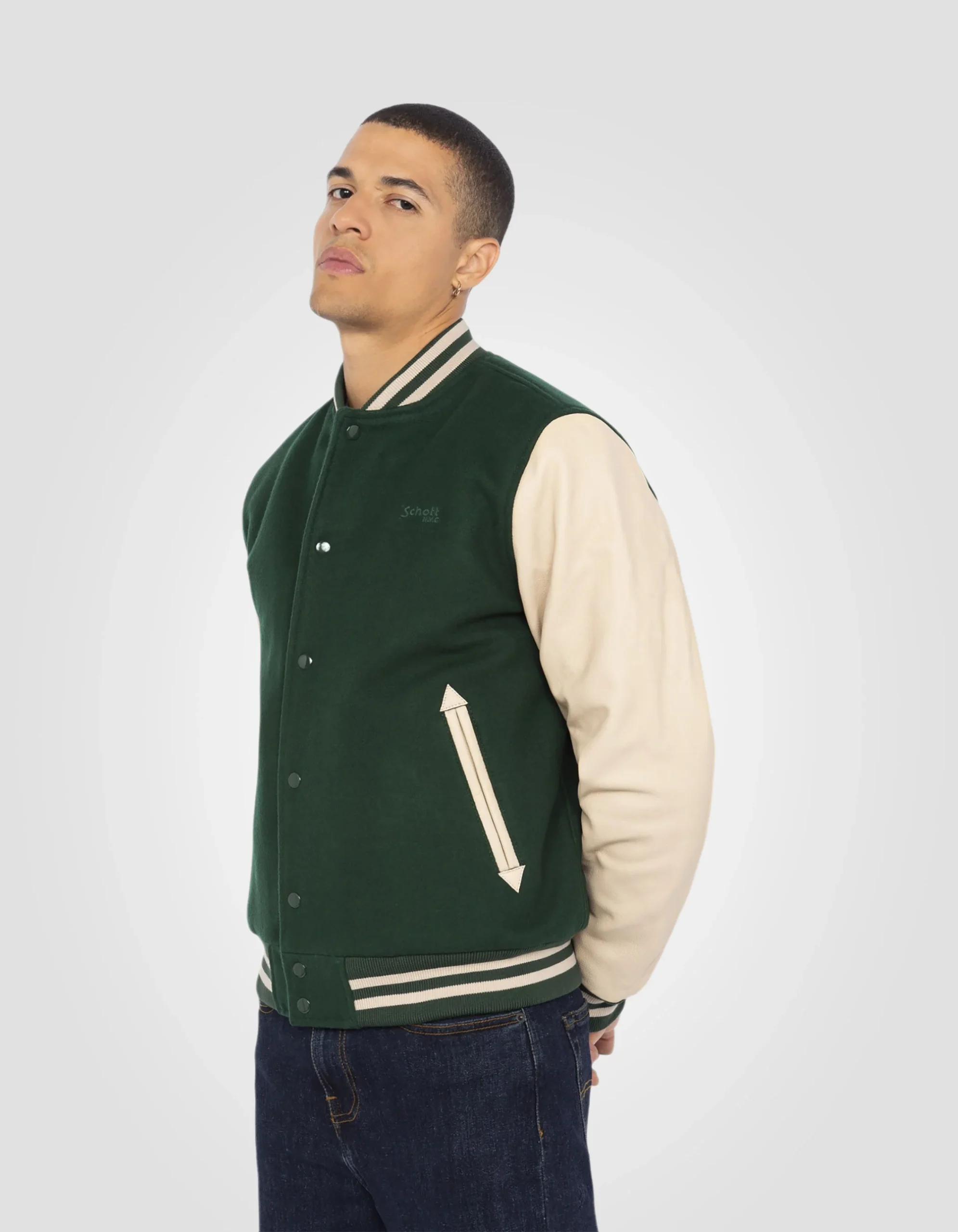 Indispensable du vestiaire Schott NYC®, optez pour ce teddy iconique qui reprend les codes du blouson varsity américain.