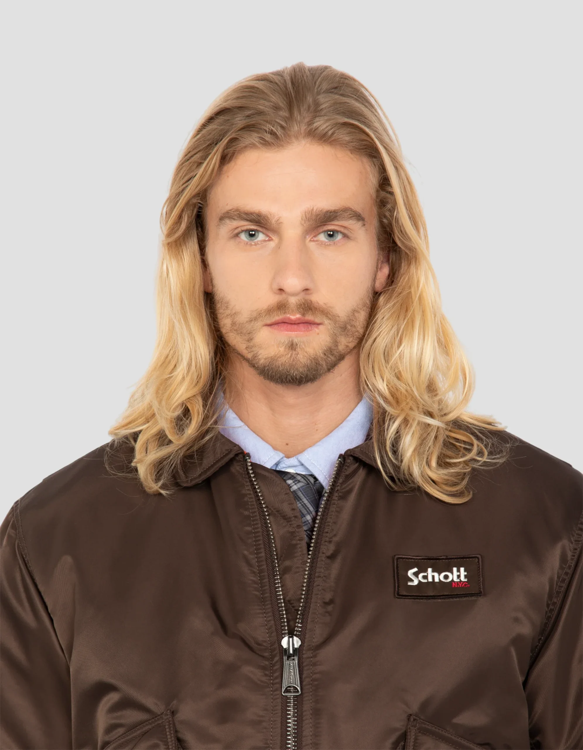 Dans les années 50, une nouvelle génération d’avions militaires nécessite la mise au point de blousons adaptés aux nouveaux cockpits : le blouson Bomber est né. Léger, chaud et fonctionnel, il a su s’imposer comme la pièce phare des années 90 et est devenu une pièce iconique que toutes les générations s’arrachent. Il a été remis au goût du jour avec une version modernisée qui présente une coupe inspirée des années 90 et un tissu extérieur en nylon recyclé.