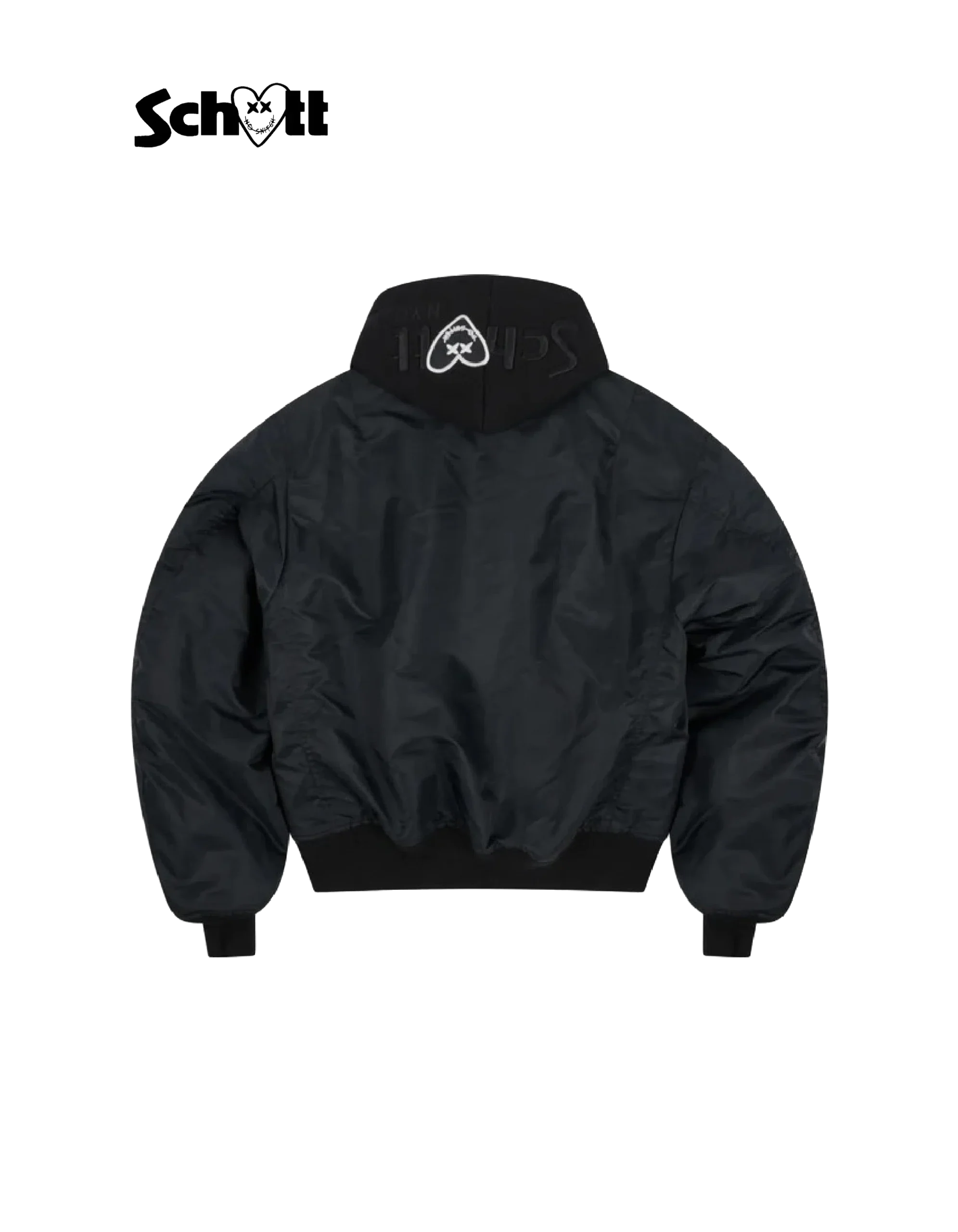 Bomber mixte noir zippé à capuche Schott NYC® x Eleven Paris