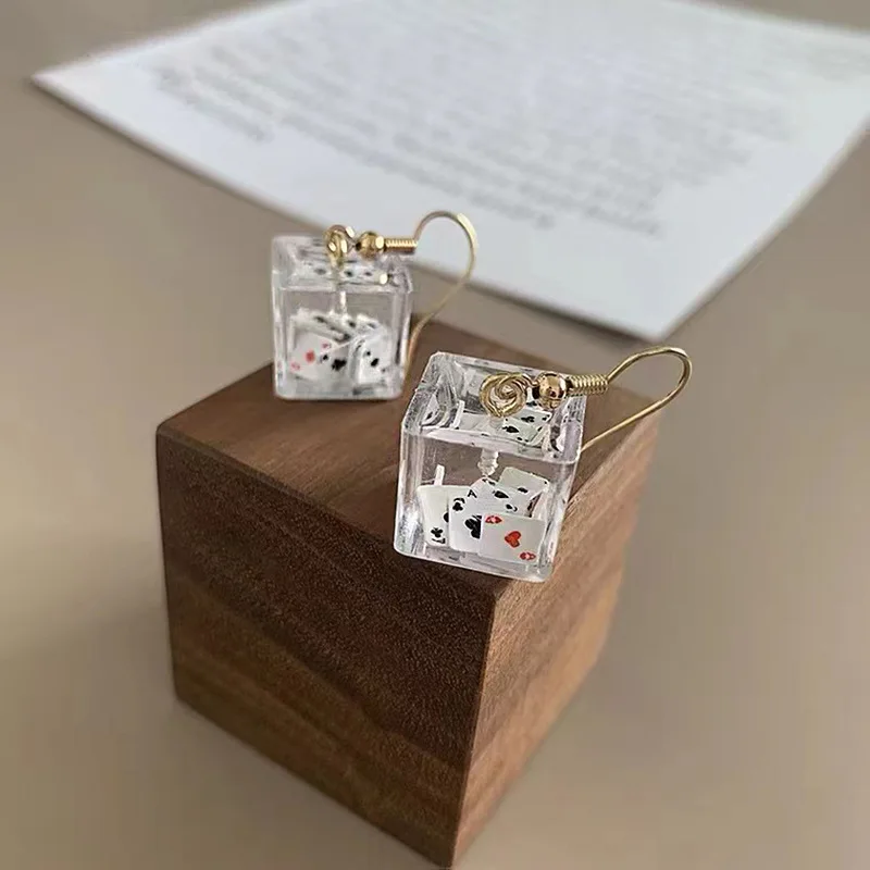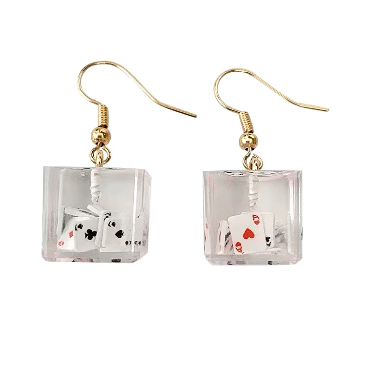 - Boucles d’oreilles carrées créatives, inspirées de l’univers des cartes de poker japonaises.
