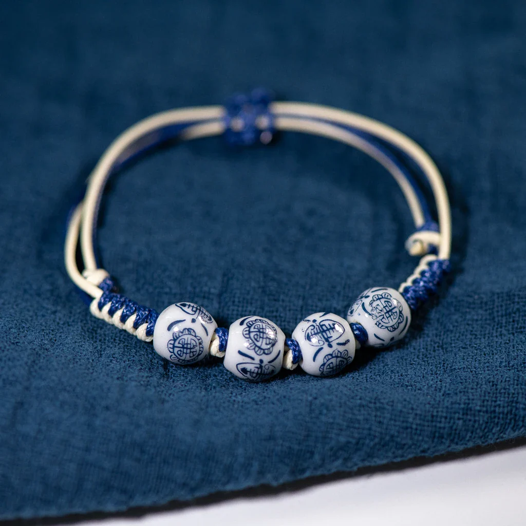Monté sur un cordon ajustable tressé à la main, ce modèle s’adapte naturellement à toutes les tailles. Les perles en céramique, uniques par leur nuance et leur finition, apportent une touche originale et intemporelle, parfaite pour un usage quotidien ou cérémoniel.