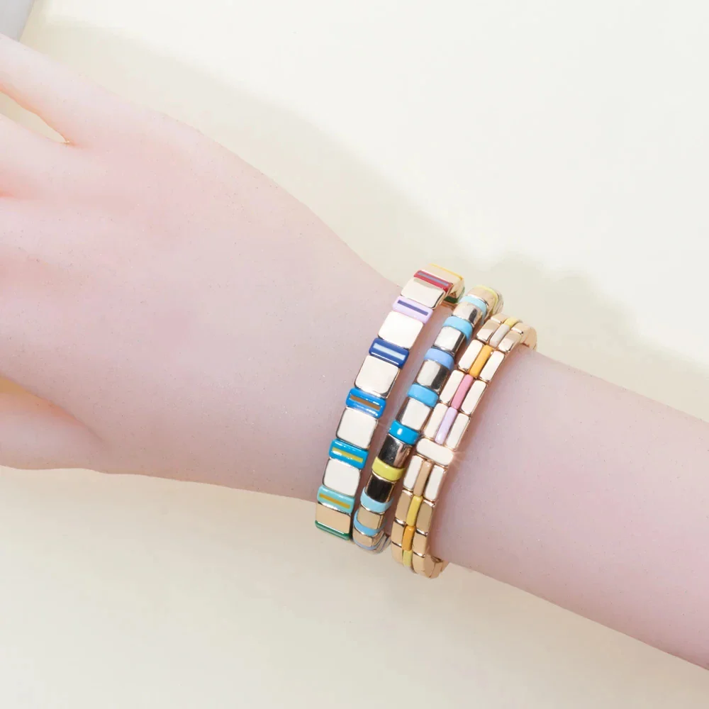 Le bracelet est fabriqué à partir de perles multiformes, soigneusement tissées pour offrir une texture unique. Son design raffiné permet une polyvalence, parfait pour toutes les occasions, qu’elles soient décontractées ou plus habillées.