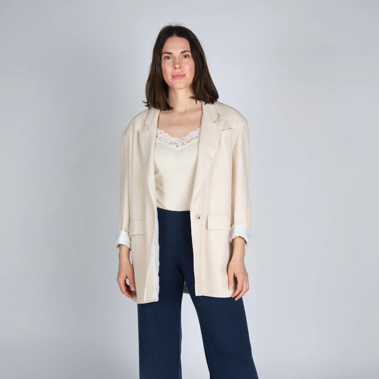 Sublimez votre garde-robe avec notre top à bretelles fines, confectionné à partir de 70% de laine mérinos de Patagonie certifiée EBC et de 30% de soie, et orné d’une élégante dentelle en fibres recyclées. Ce top délicat allie durabilité, confort et élégance, parfait pour toute occasion.