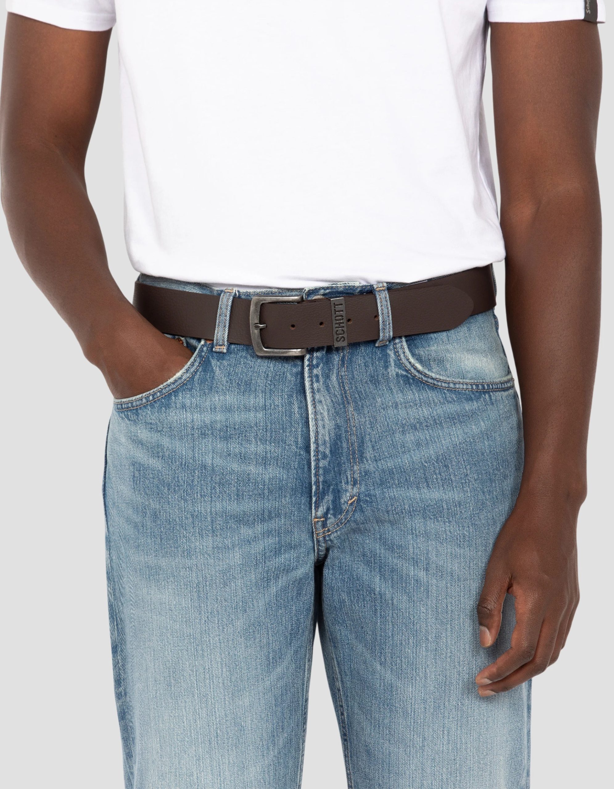 Ceinture vintage avec boucle métallique perforée, cuir de vachette