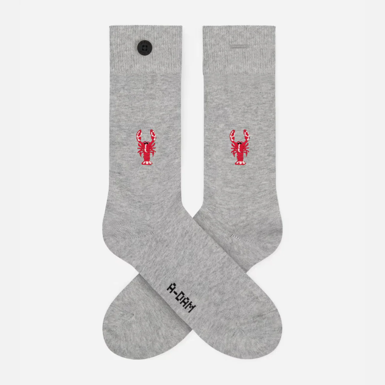 Petit détail charmant et pratique : toutes les paires sont composées d’une chaussette avec un bouton, l’autre avec une boutonnière pour qu’elles restent ensemble pour le passage en machine !