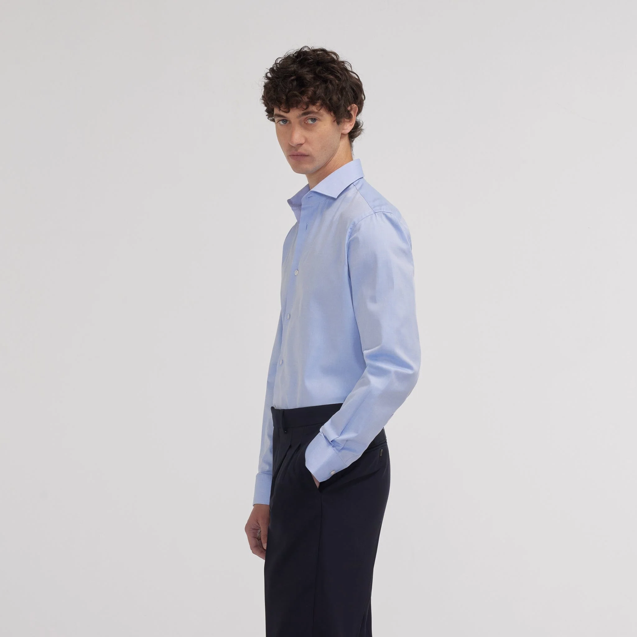 Sa coupe cintrée met en valeur les morphologies fines, tandis que notre col signature, pensé pour convenir à tous, avec ou sans cravate, apporte une touche de raffinement discret.