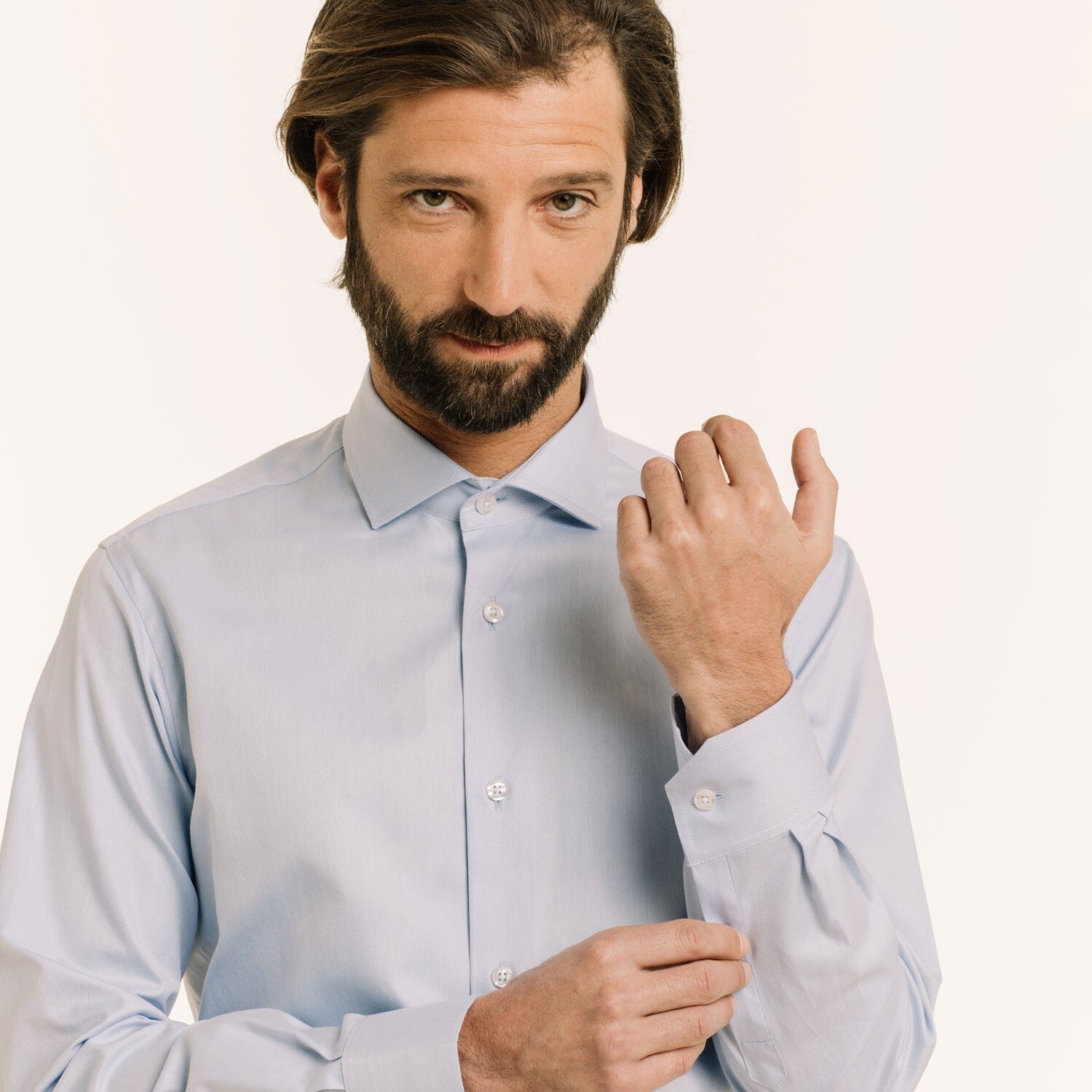 Notre chemise cintrée bleue à chevrons double retors est un grand classique du vestiaire formel. Facile à repasser, le chevron est particulièrement apprécié pour son subtil motif en zigzag qui apporte du relief. L’utilisation du double retors permet d’avoir une chemise plus douce et plus résistante.