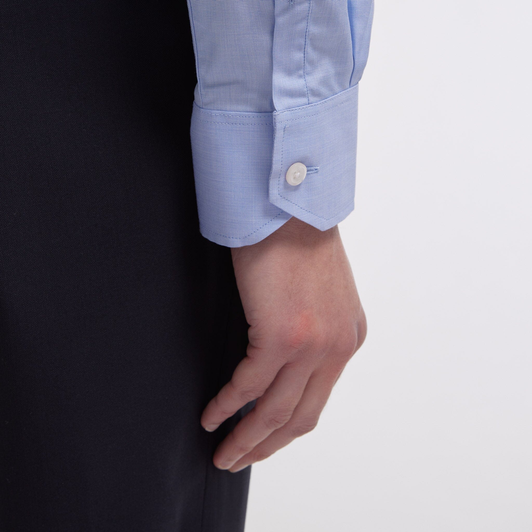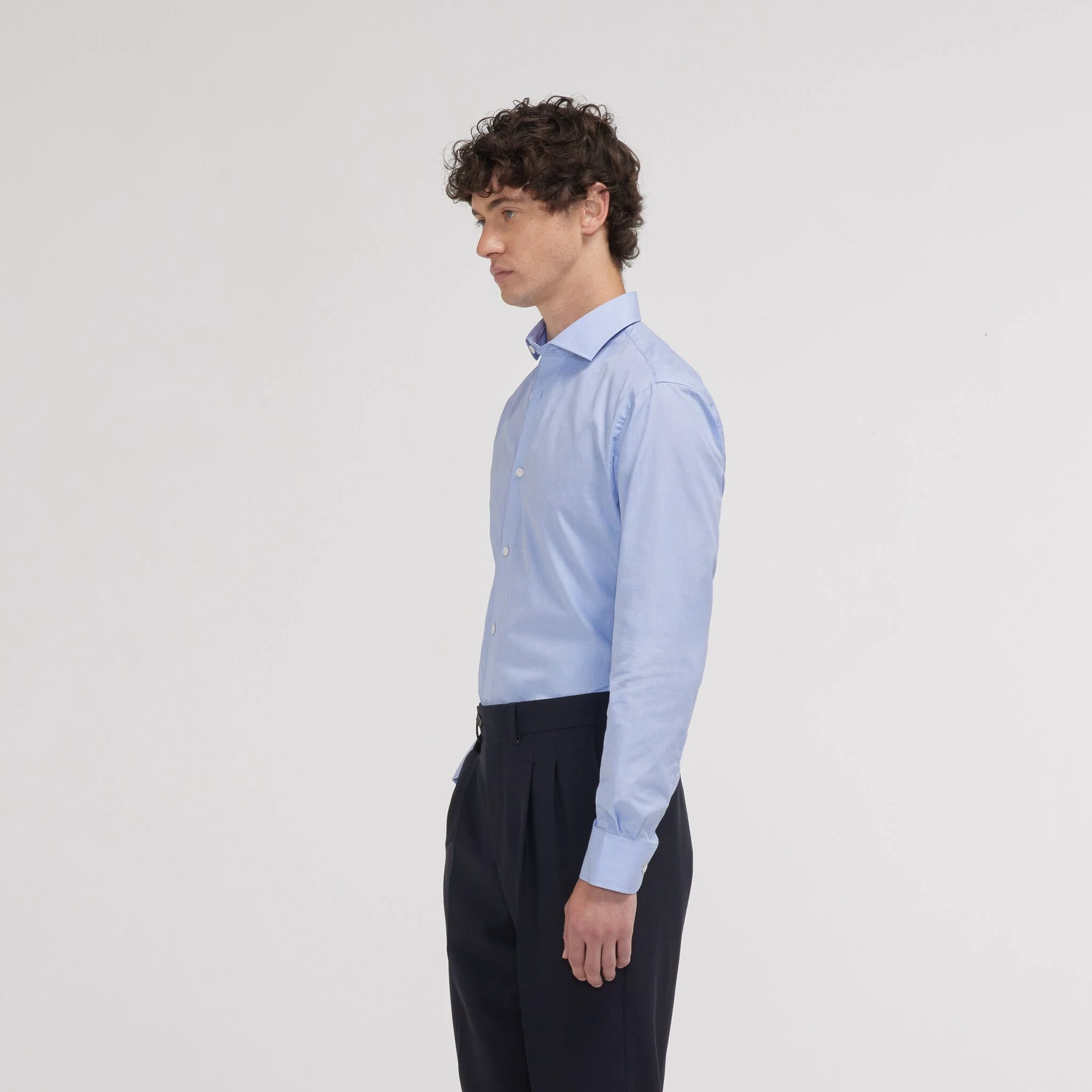 Avec sa matière si raffinée, notre chemise cintrée en fil-à-fil double retors bleue à col semi-cutaway joue sur les détails et les textures. A associer avec une cravate unie pour un beau contraste. L’utilisation du double retors permet d’avoir une chemise plus douce et plus résistante.