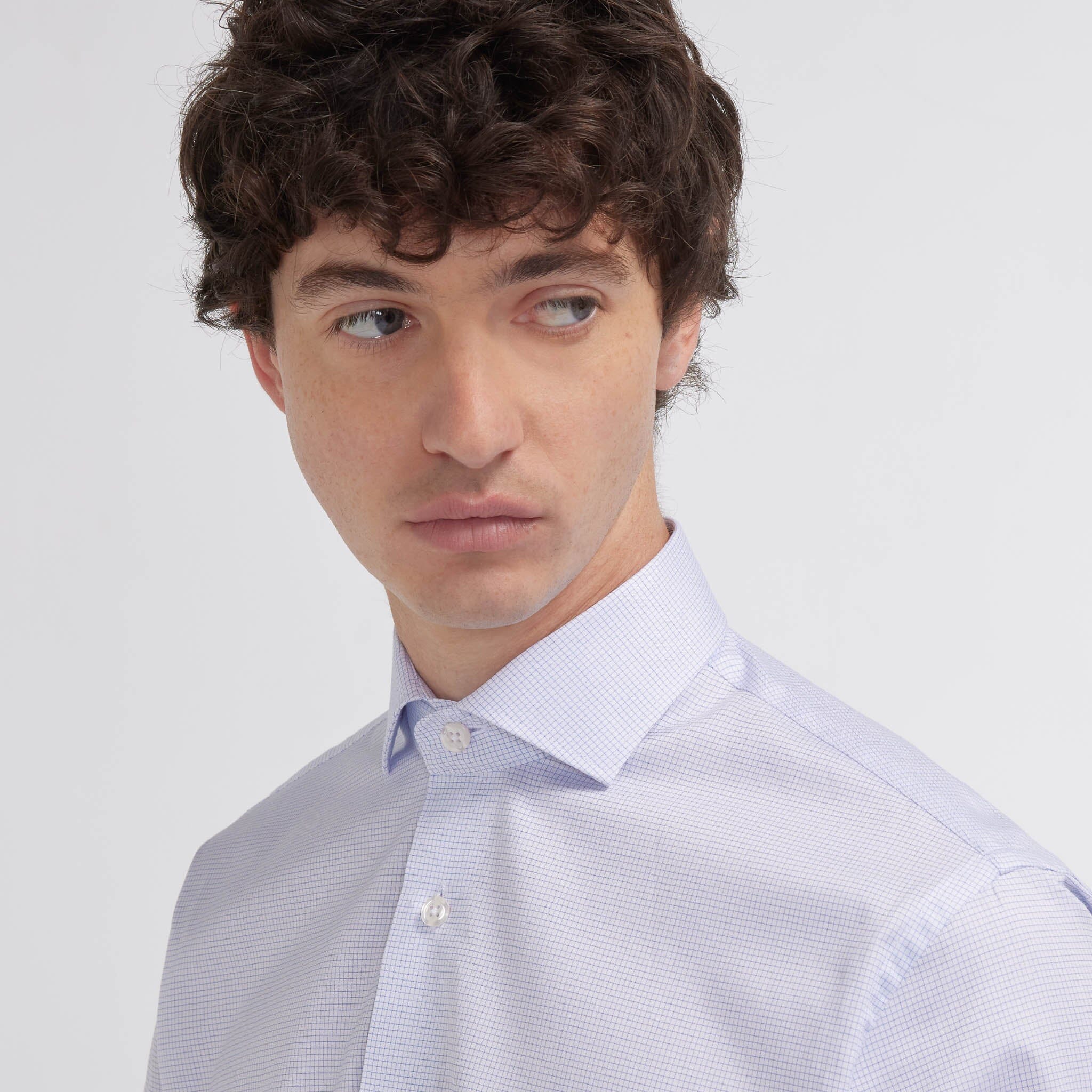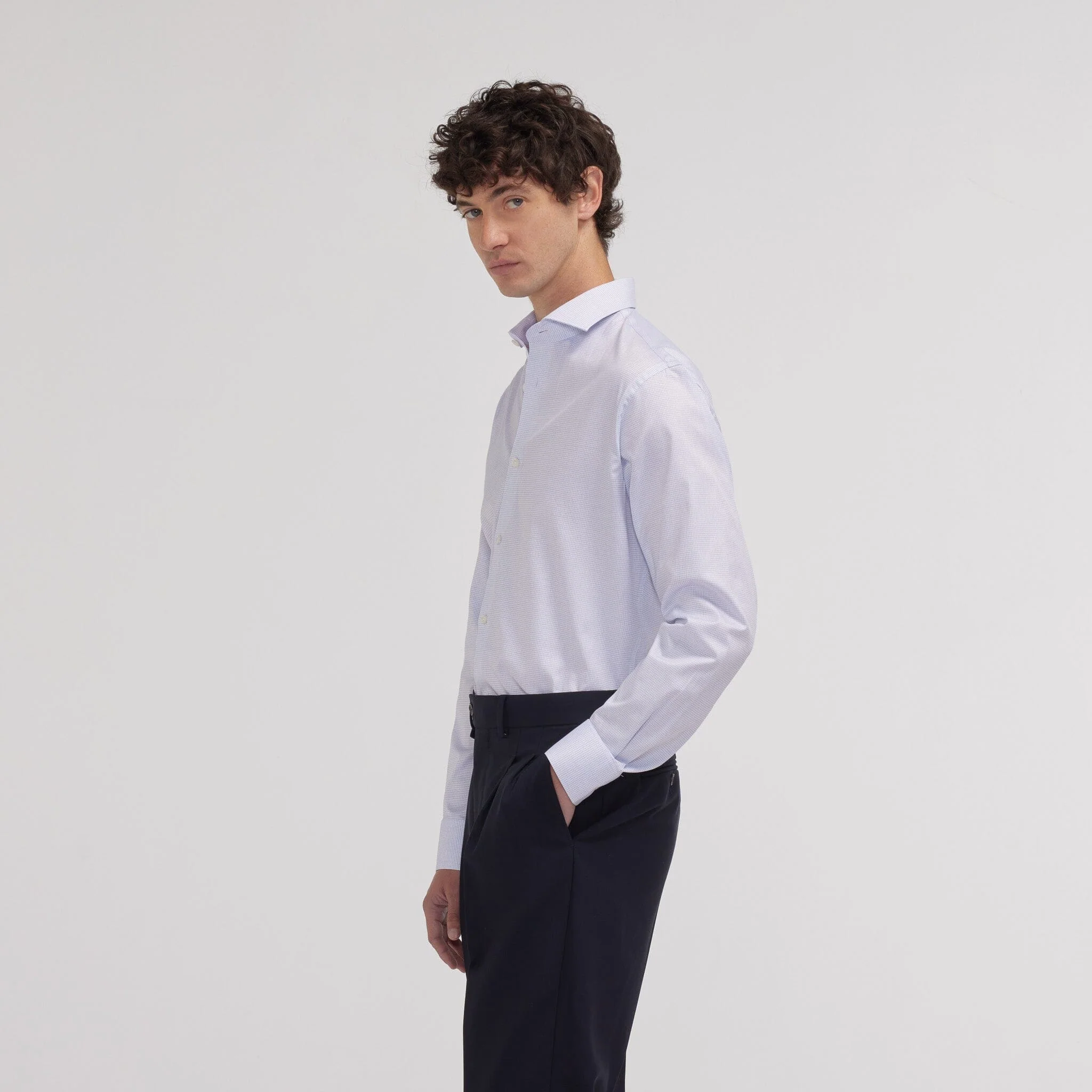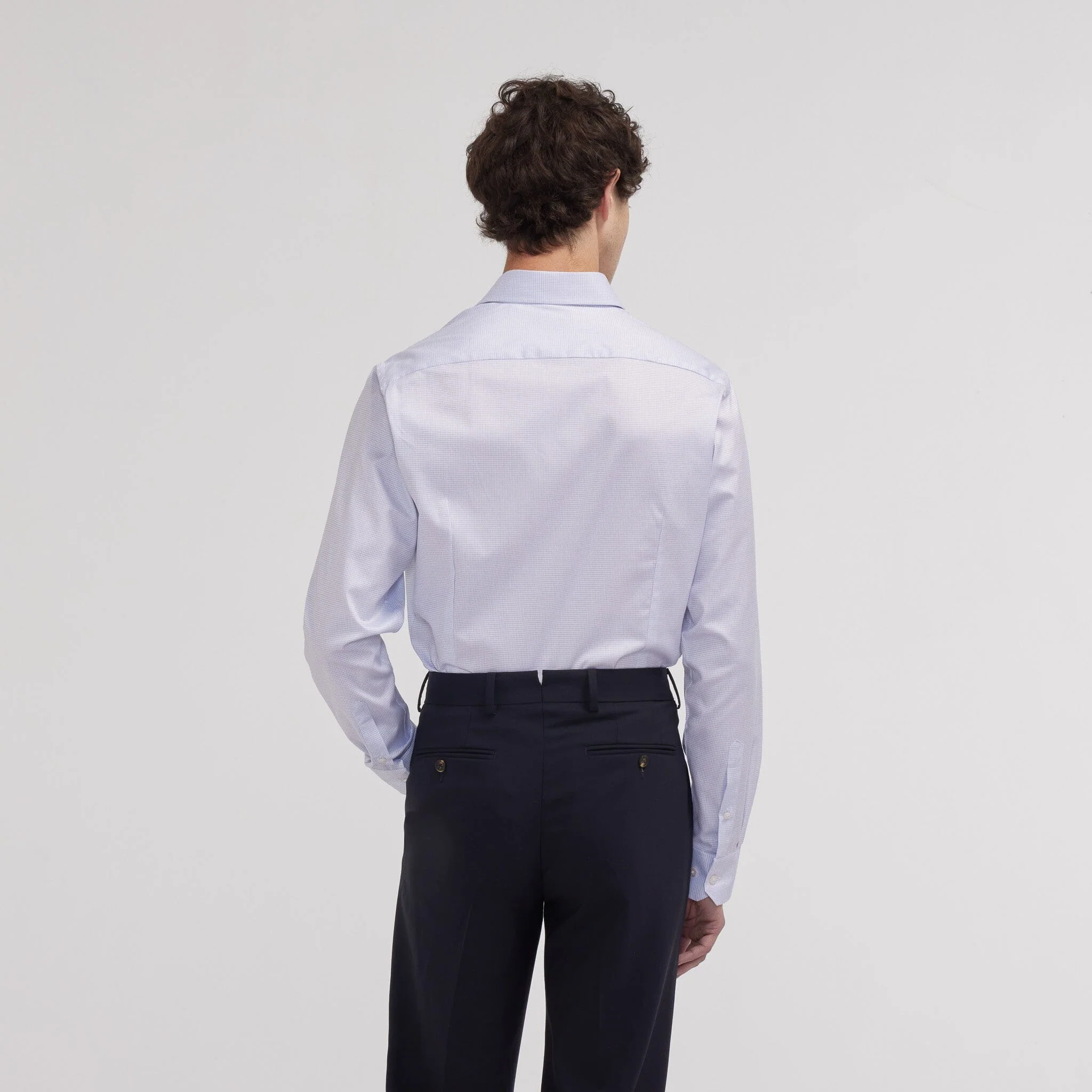 Sa coupe cintrée met en valeur les morphologies fines, tandis que notre col signature, pensé pour convenir à tous, avec ou sans cravate, apporte une touche de raffinement discret.