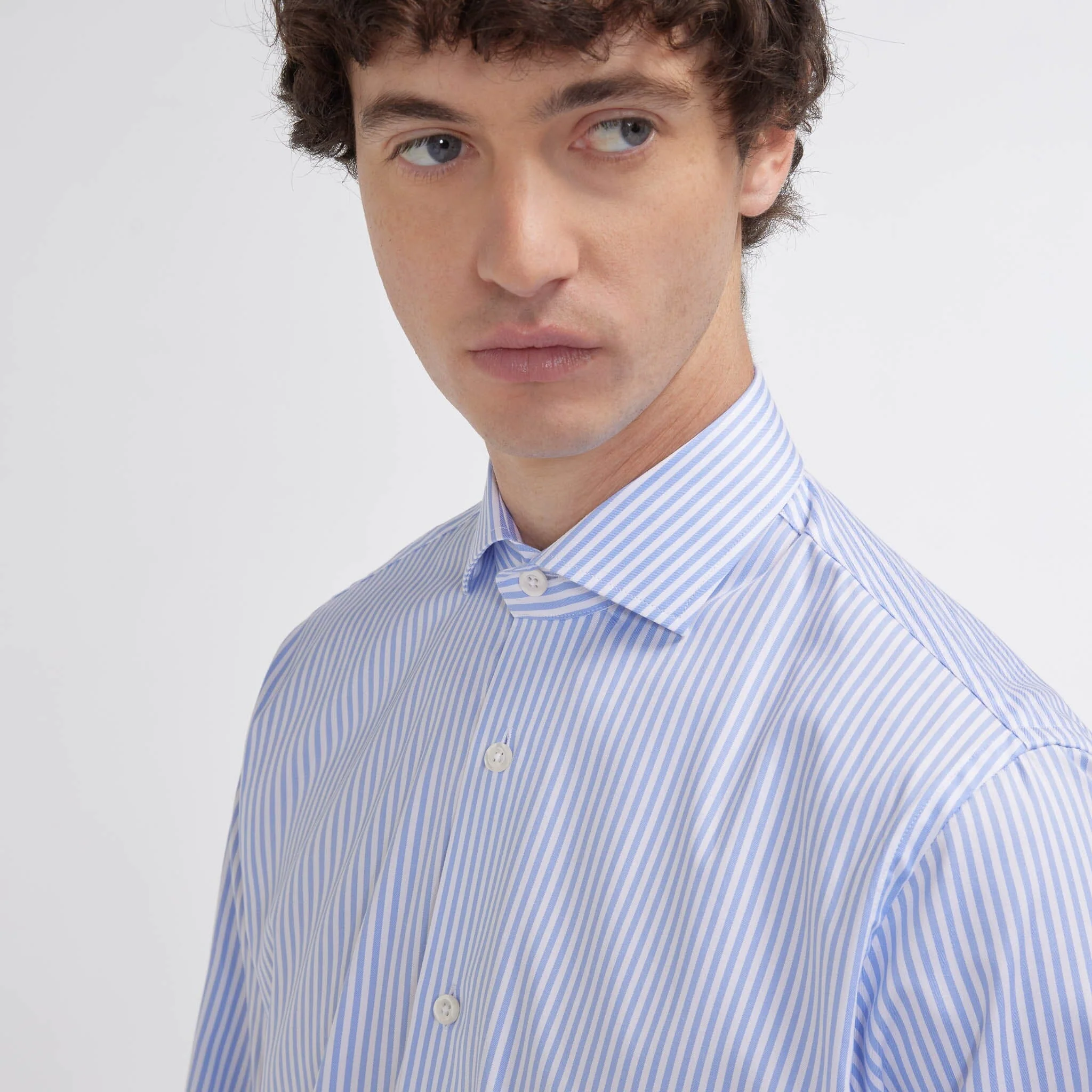 Sa coupe cintrée met en valeur les morphologies fines, tandis que notre col signature, pensé pour convenir à tous, avec ou sans cravate, apporte une touche de raffinement discret.