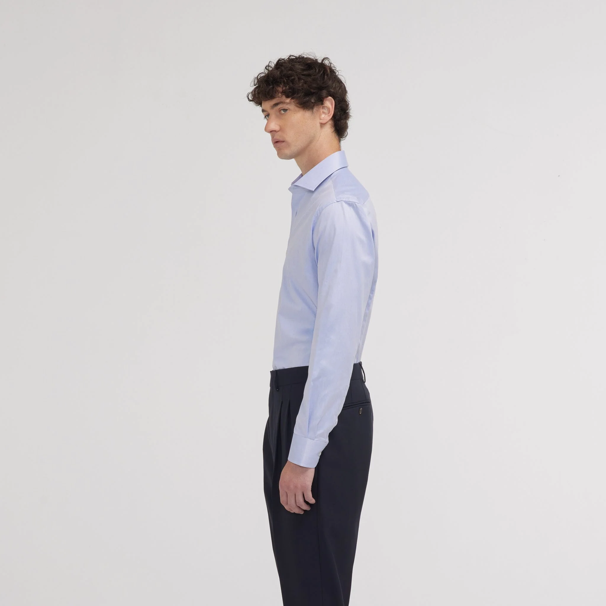 Notre chemise cintrée bleue en twill 100% coton double retors est un excellent choix pour un style formel élégant. Le twill est un tissu doux et confortable, facile à repasser. L’utilisation du double retors permet d’avoir une chemise plus résistante.
