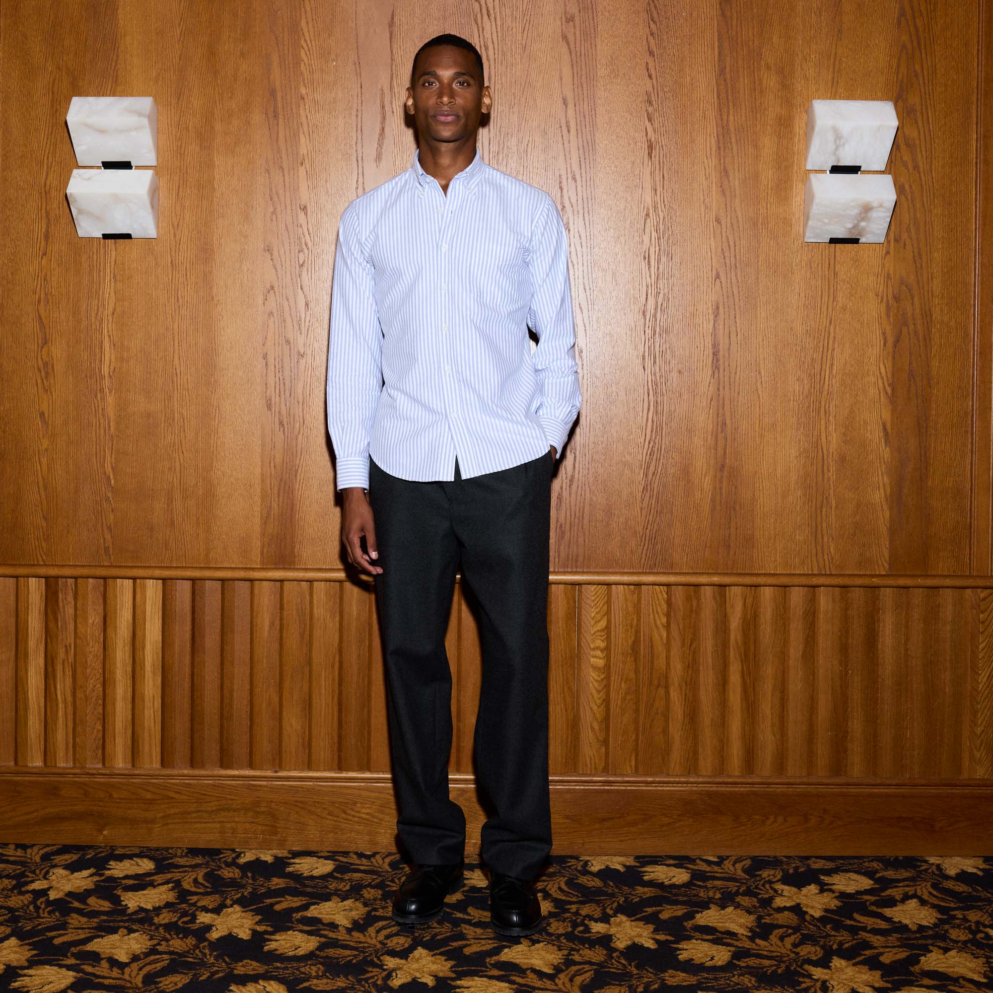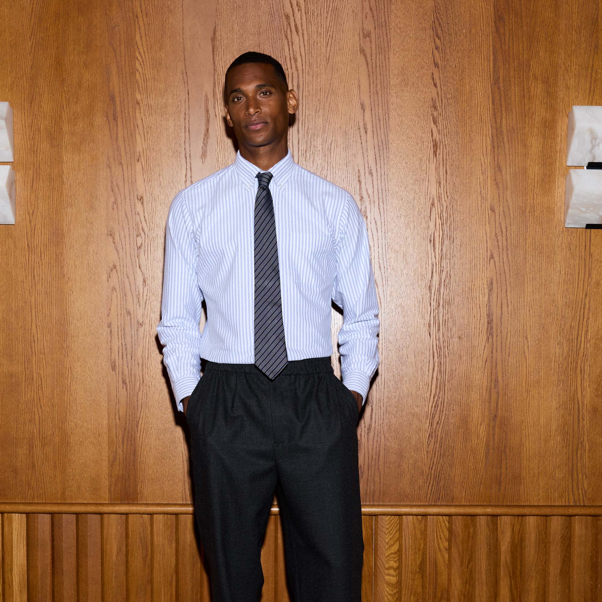 Un col boutonné généreux et des rayures bleu chiné et blanches : voici une chemise qui se porte avec tout. Le tissage en oxford amène du relief tandis que la flanelle apporte de la douceur.