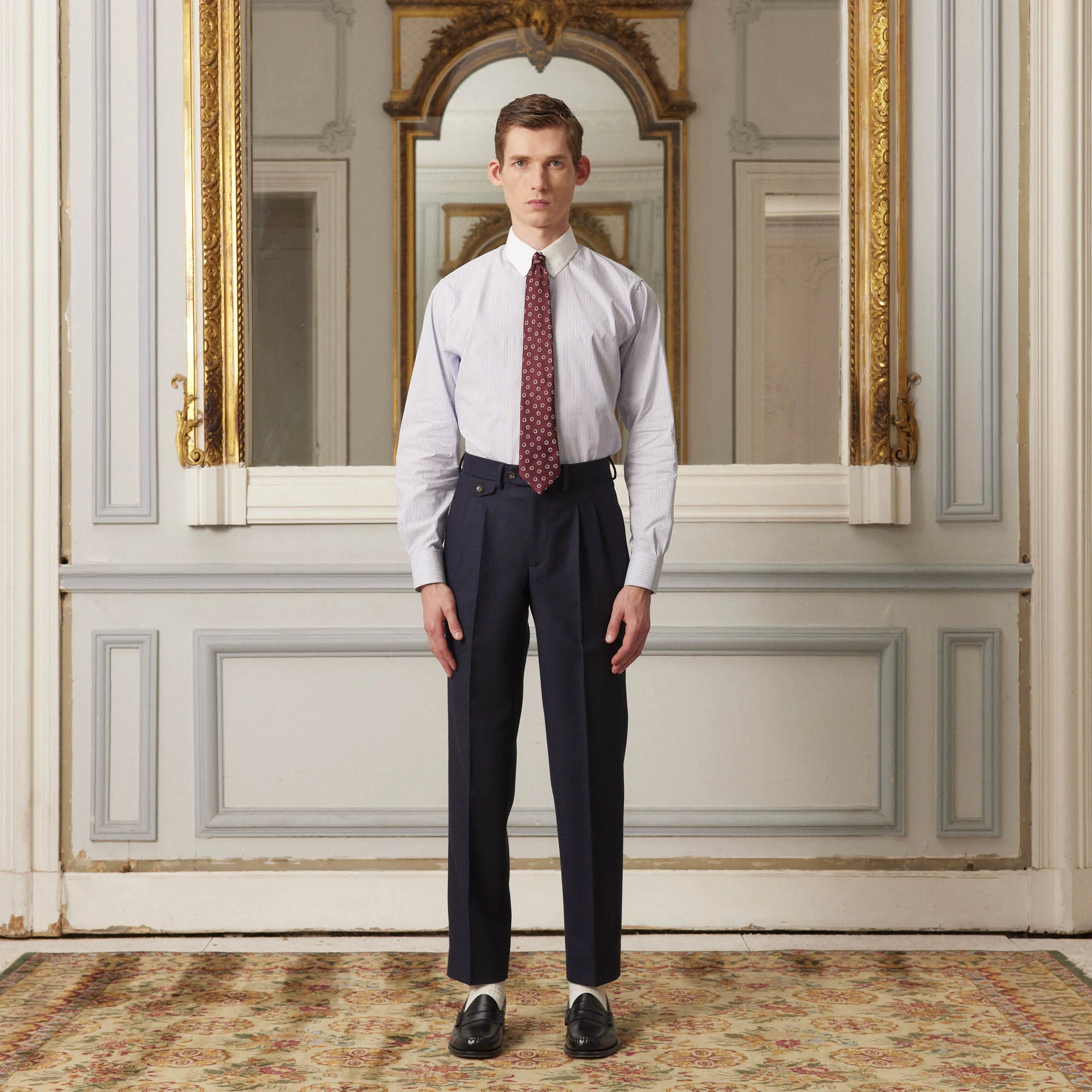 Le col anglais, avec sa petite patte qui permet de donner de la tenue et du relief à la cravate, est d’une grande élégance et donne beaucoup d’allure.