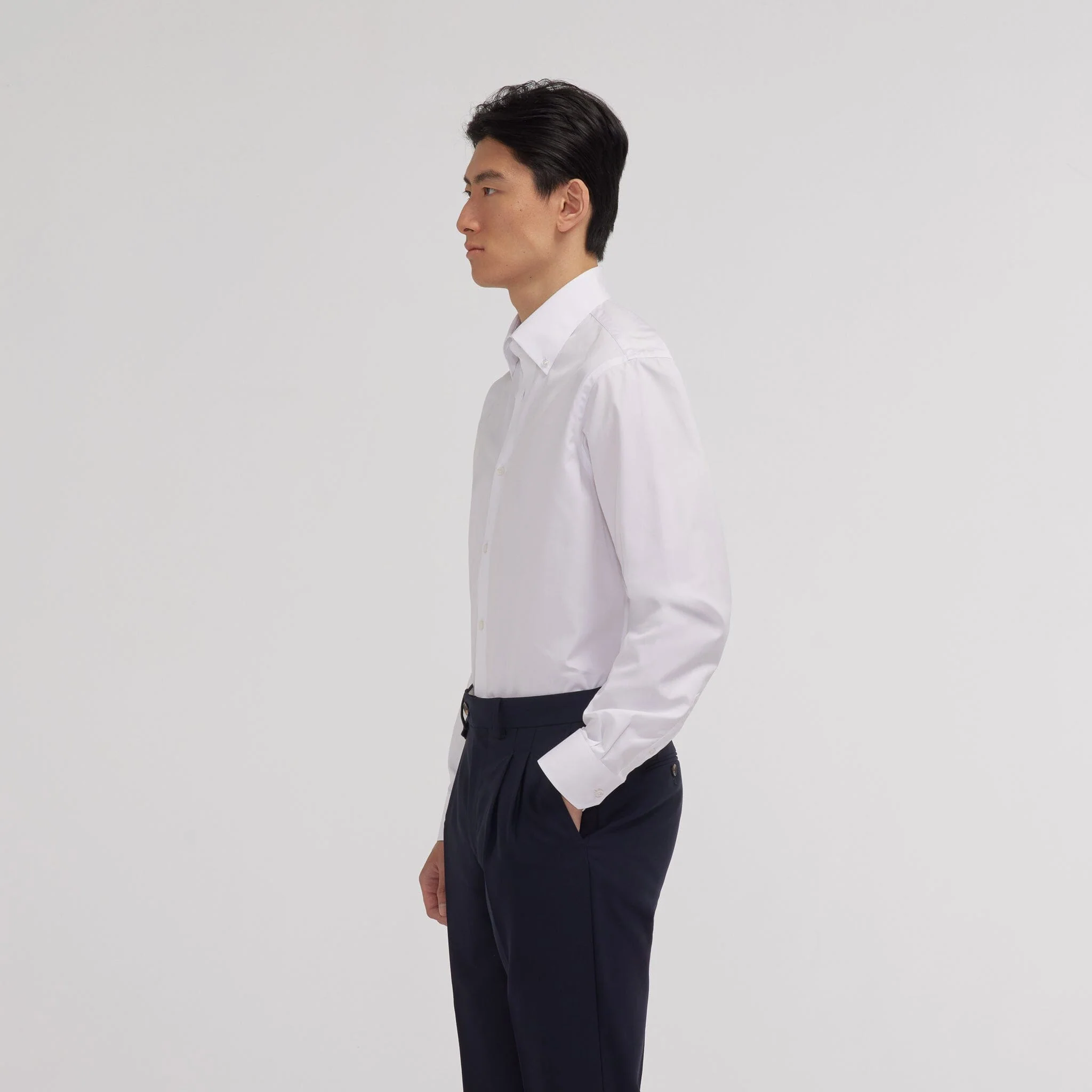 Cette chemise blanche en popeline 100% coton double retors est une pièce essentielle et d’une grande élégance, dont la coupe classique met en valeur la silhouette.