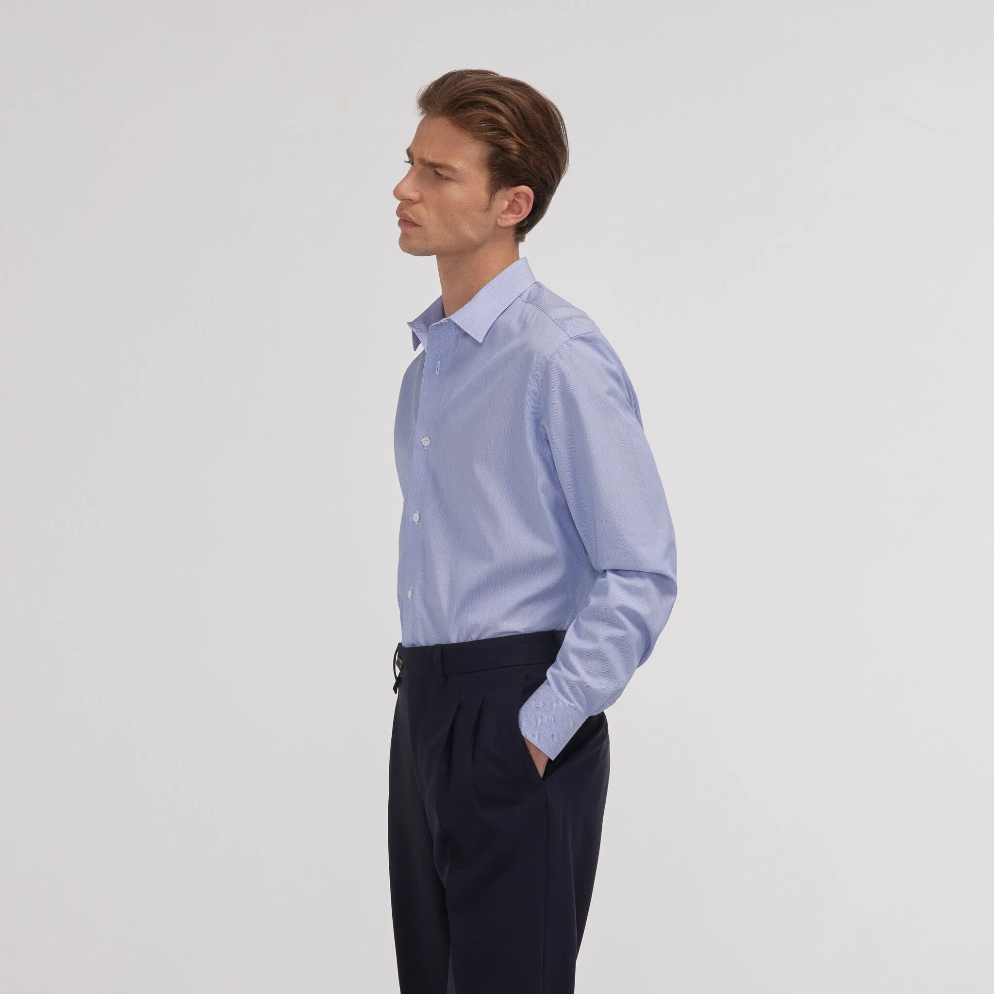 Tissu de référence pour les chemises formelles, la popeline se caractérise par son tissage serré et régulier, qui lui confère un aspect lisse et une grande douceur, très agréable à porter.