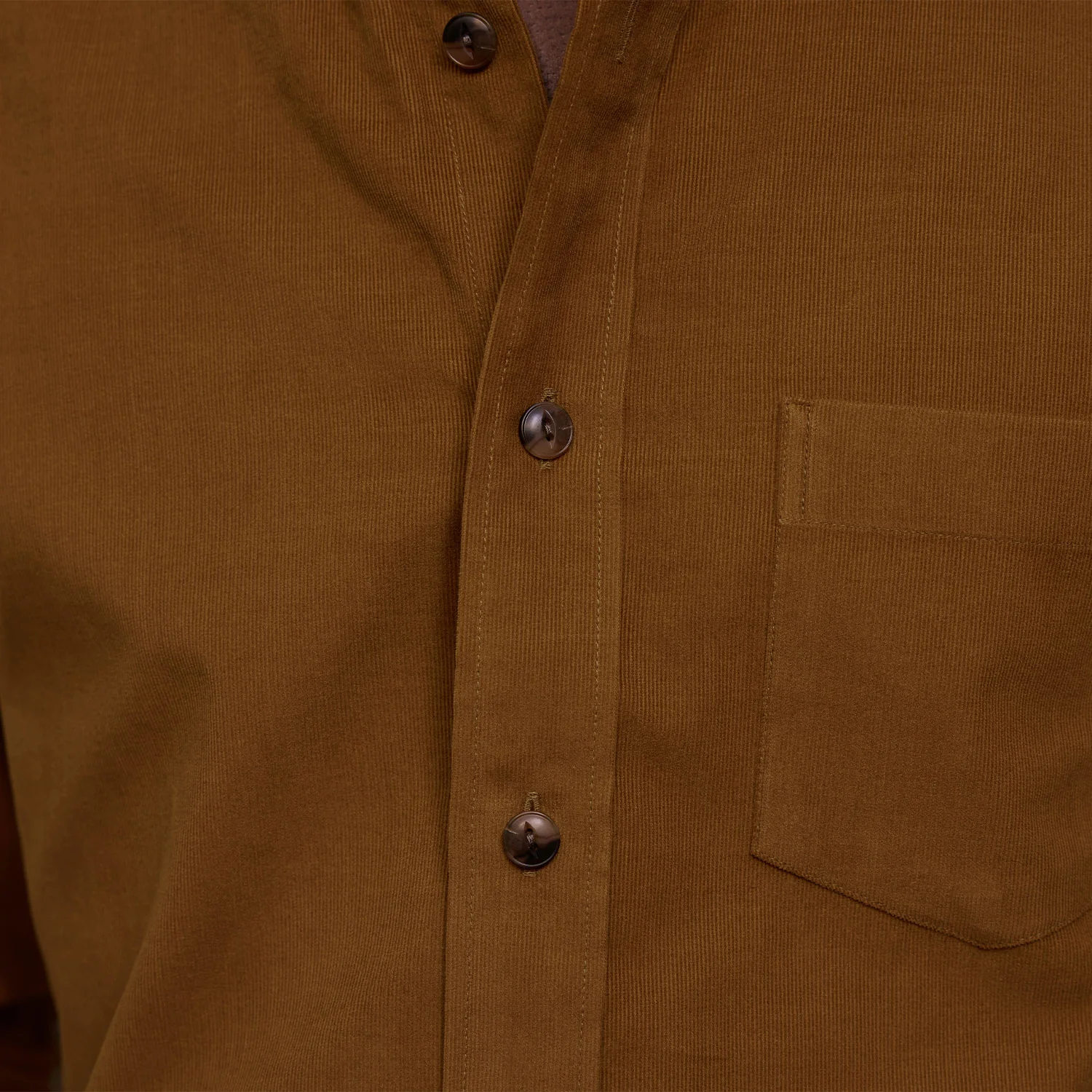 Pièce casual chic par excellence, la chemise en velours côtelé se décline dans un beau camel et donnera du relief à vos tenues. Le velours de cette chemise vient d’une grande maison de luxe italienne.