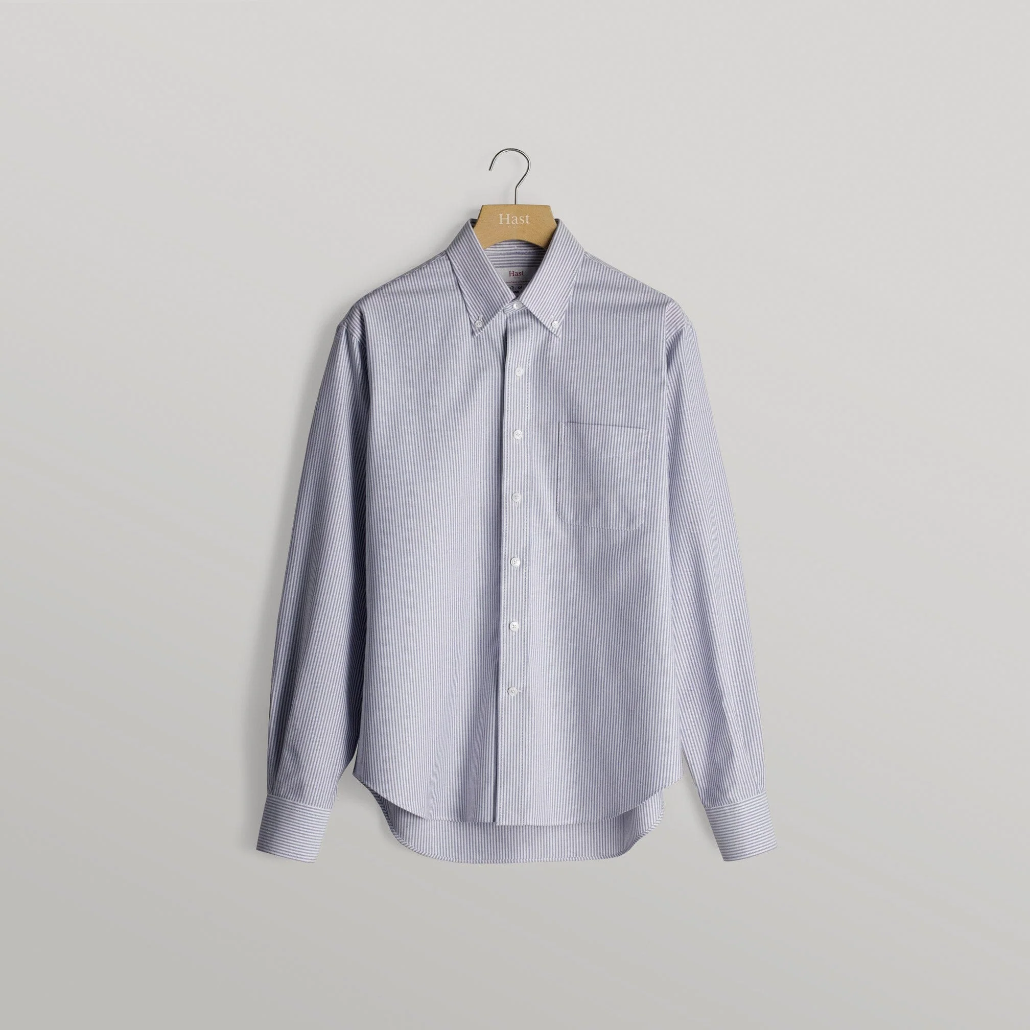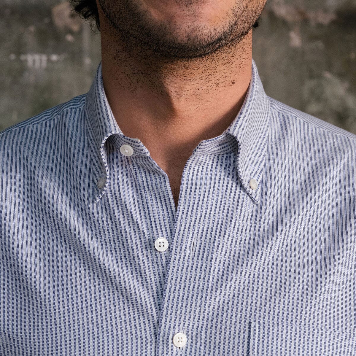 Pour cette chemise, l’oxford de coton que nous avons déniché chez Albini peut être considéré comme le plus beau du marché, rien que ça. Réédition contemporaine d’une armure d’époque, il est d’assez loin le plus délicat que nous ayons pu voir et toucher. Le col, au roulé si harmonieux, contribue au caractère exceptionnel de cette pièce.