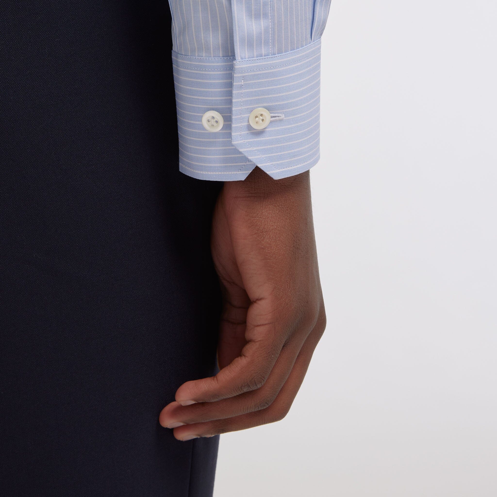 Les finitions haut de gamme comme les boutons en nacre ou bien la couture 7 points au centimètre reflètent tout le savoir-faire que nous mettons dans nos pièces les plus exigeantes.