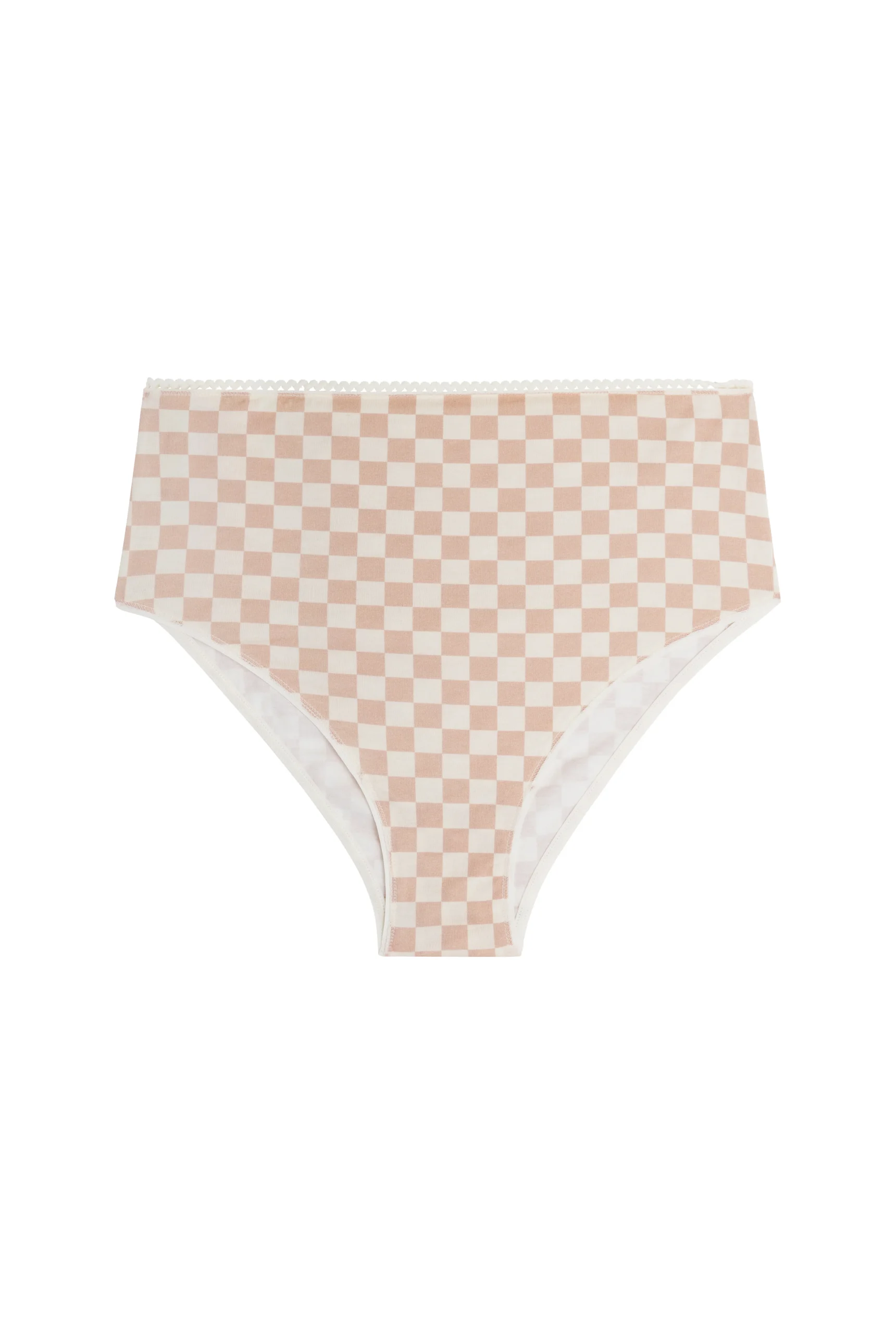 D’ailleurs, cette culotte taille haute en coton bio imprimé damier rose poudré fait partie de notre collection Flashback, une ode aux années 80 et à leur liberté stylée. On a ressuscité cette énergie dans des pièces modernes, hyper confortables, mais toujours avec ce petit twist rétro.