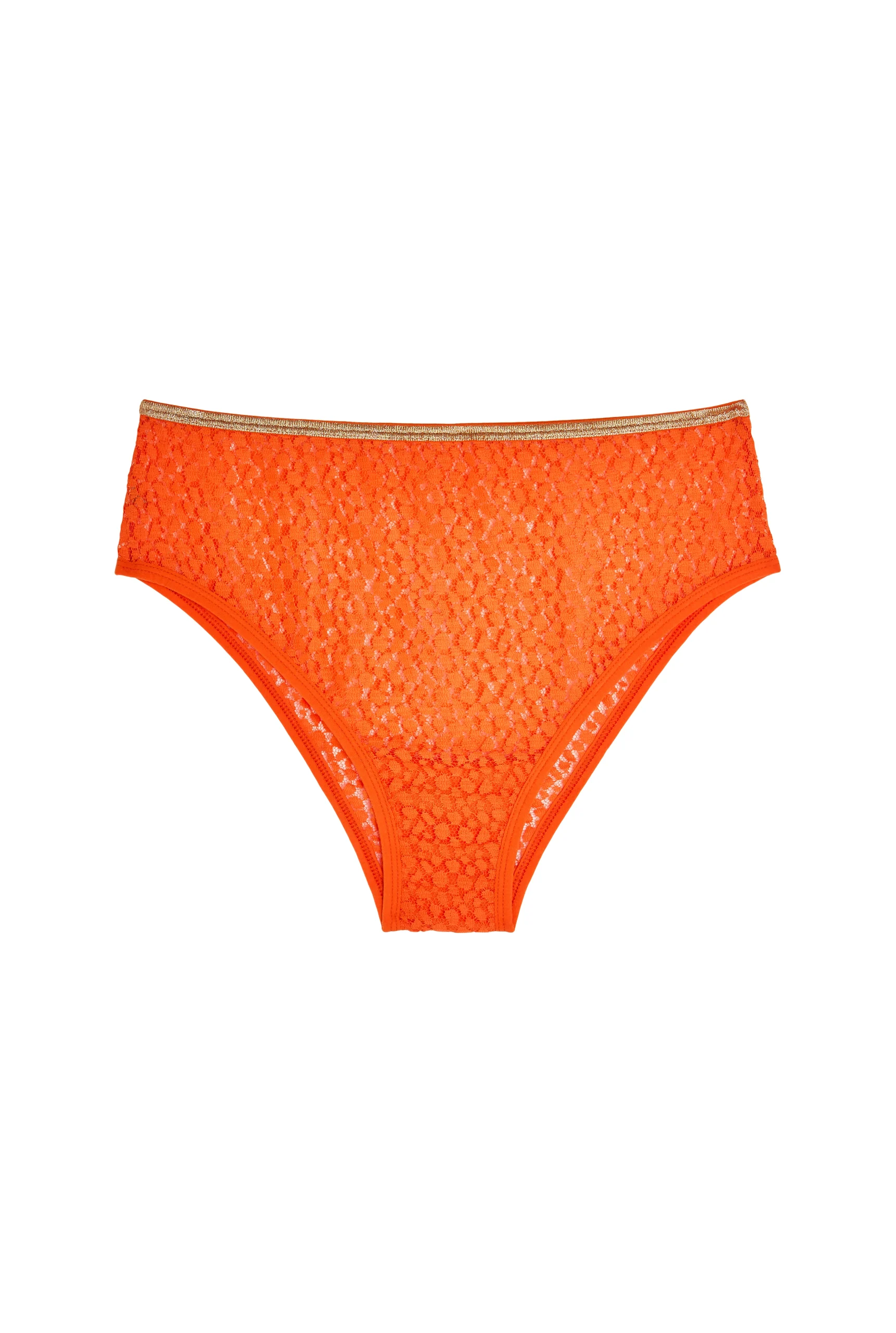 Ah et cette couleur orange vibrante incroyable, on en parle ? Car cette culotte taille haute en dentelle fait partie de notre collection appelée Paraíso, inspirée de l’incroyable ville de Rio. 🌞