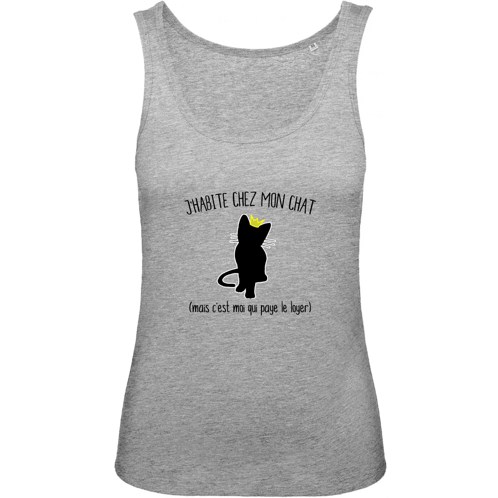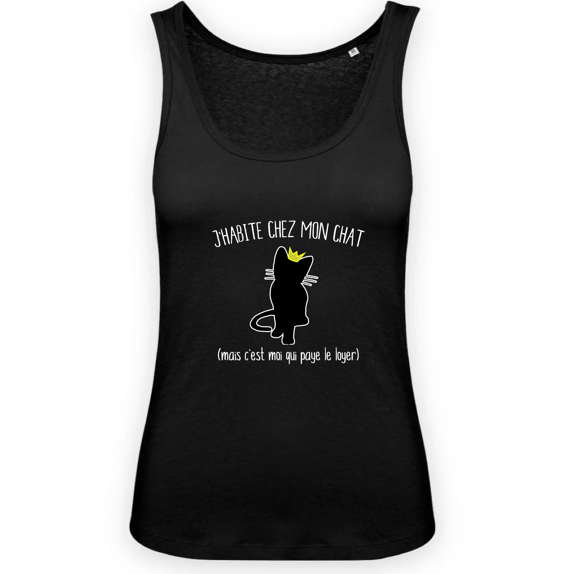 Le débardeur sympa pour offrir à toutes les femmes qui possèdent un petit félin et qui se sont forcément dit au moins une fois J’Habite Chez Mon Chat.