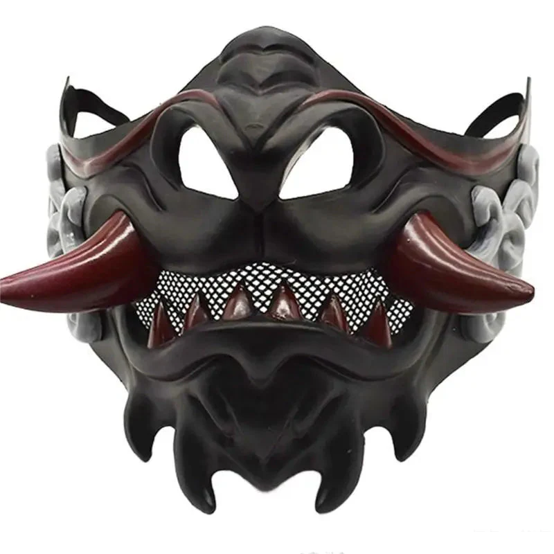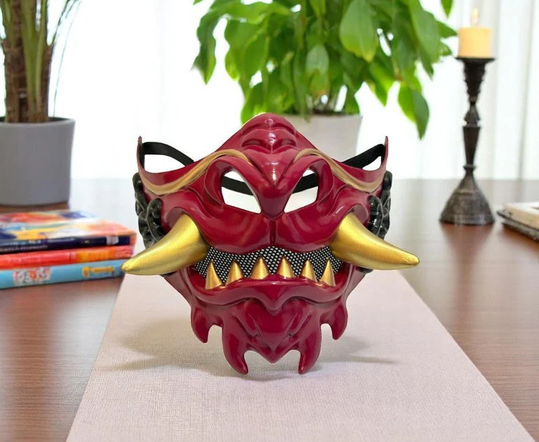 - Ajoutez une touche dramatique et mystique à votre costume avec ce demi-masque japonais inspiré du diable samouraï.