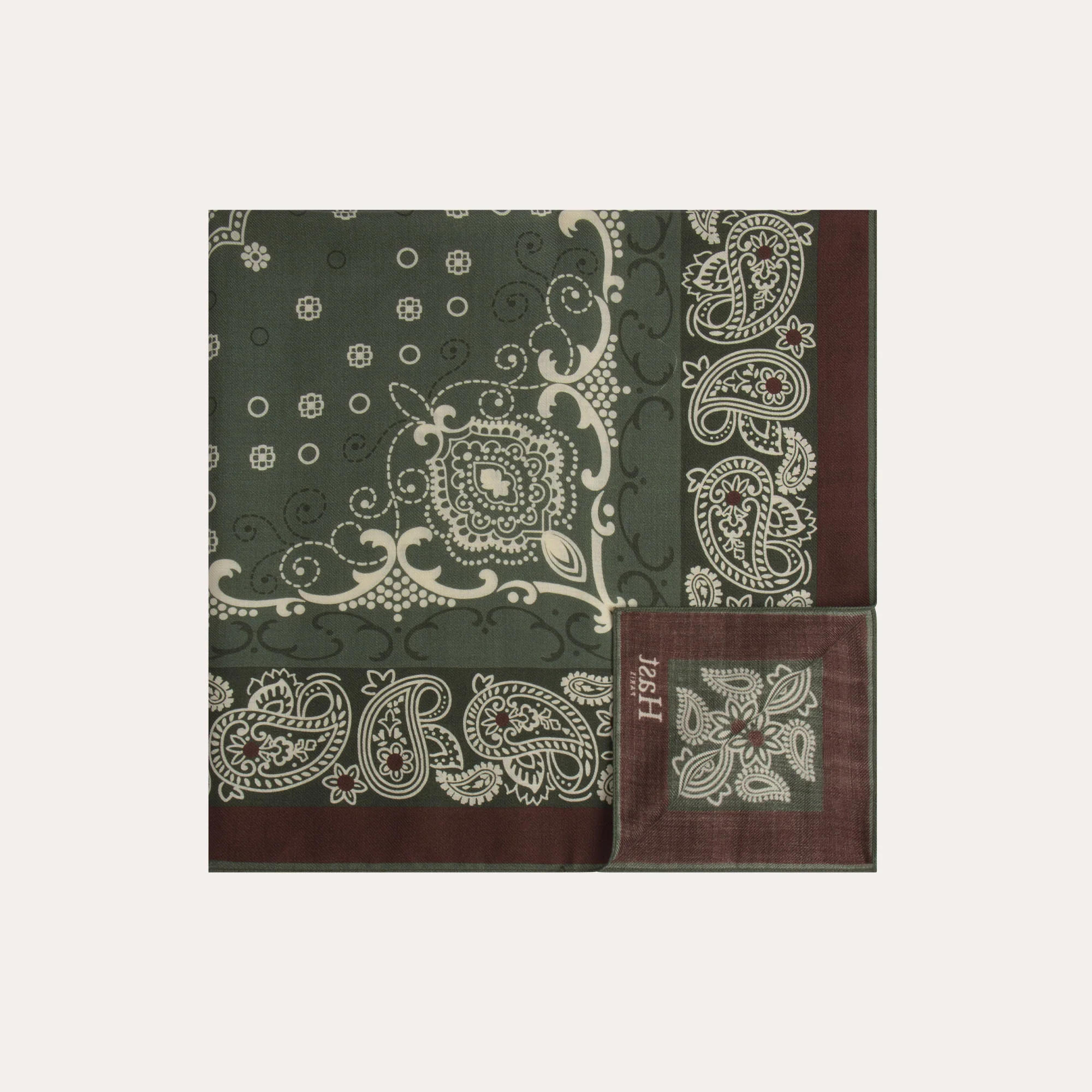 Nouveauté de la saison, nous déclinons notre foulard en laine et soie à motif exclusif signé Hast. En vert, il sera la touche finale d’une tenue élégante et décontractée.