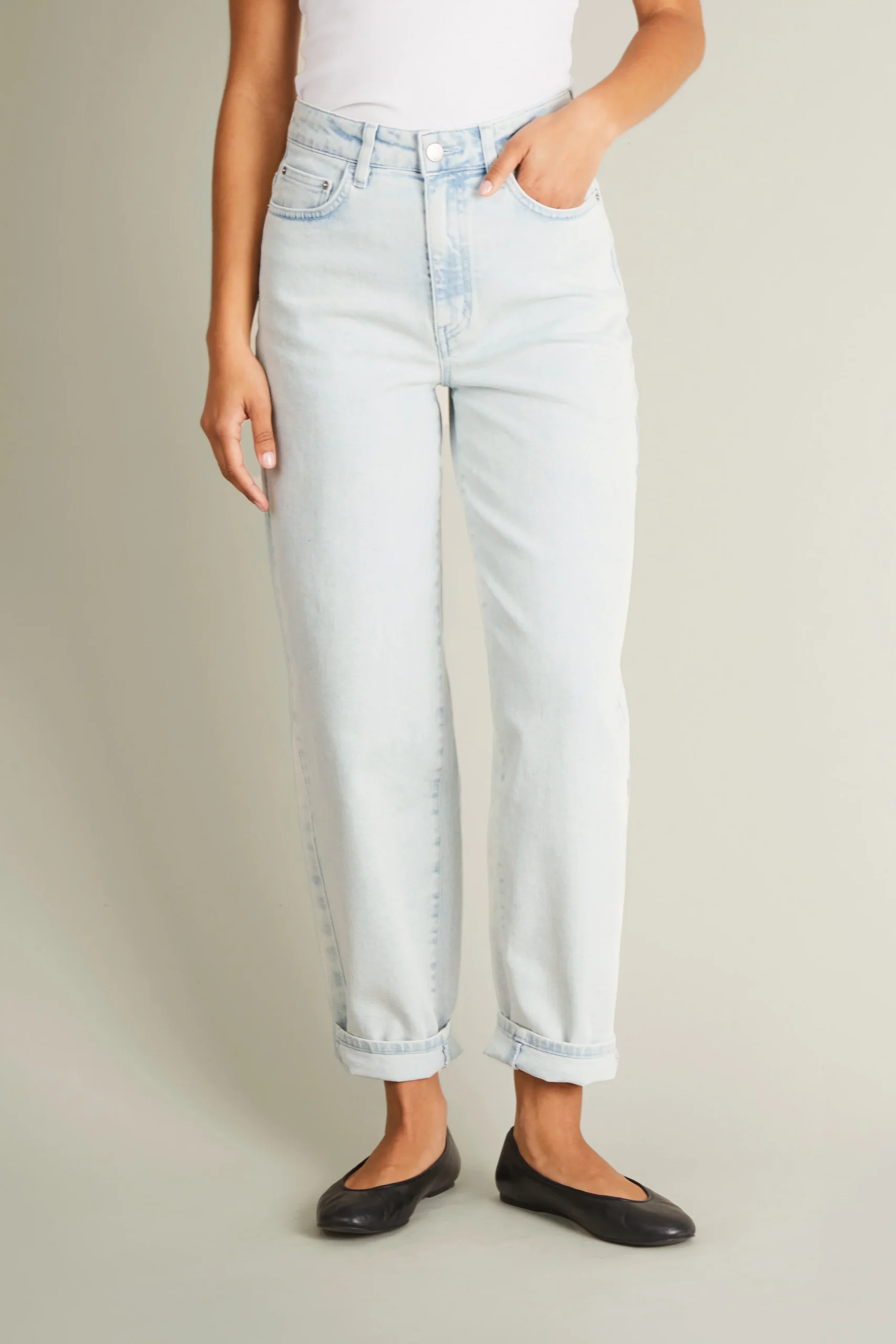 - L’oversize maîtrisé, la silhouette arrondie du Jean balloon, légèrement resserrée en bas de jambe, offre une allure élégante et décontractée.