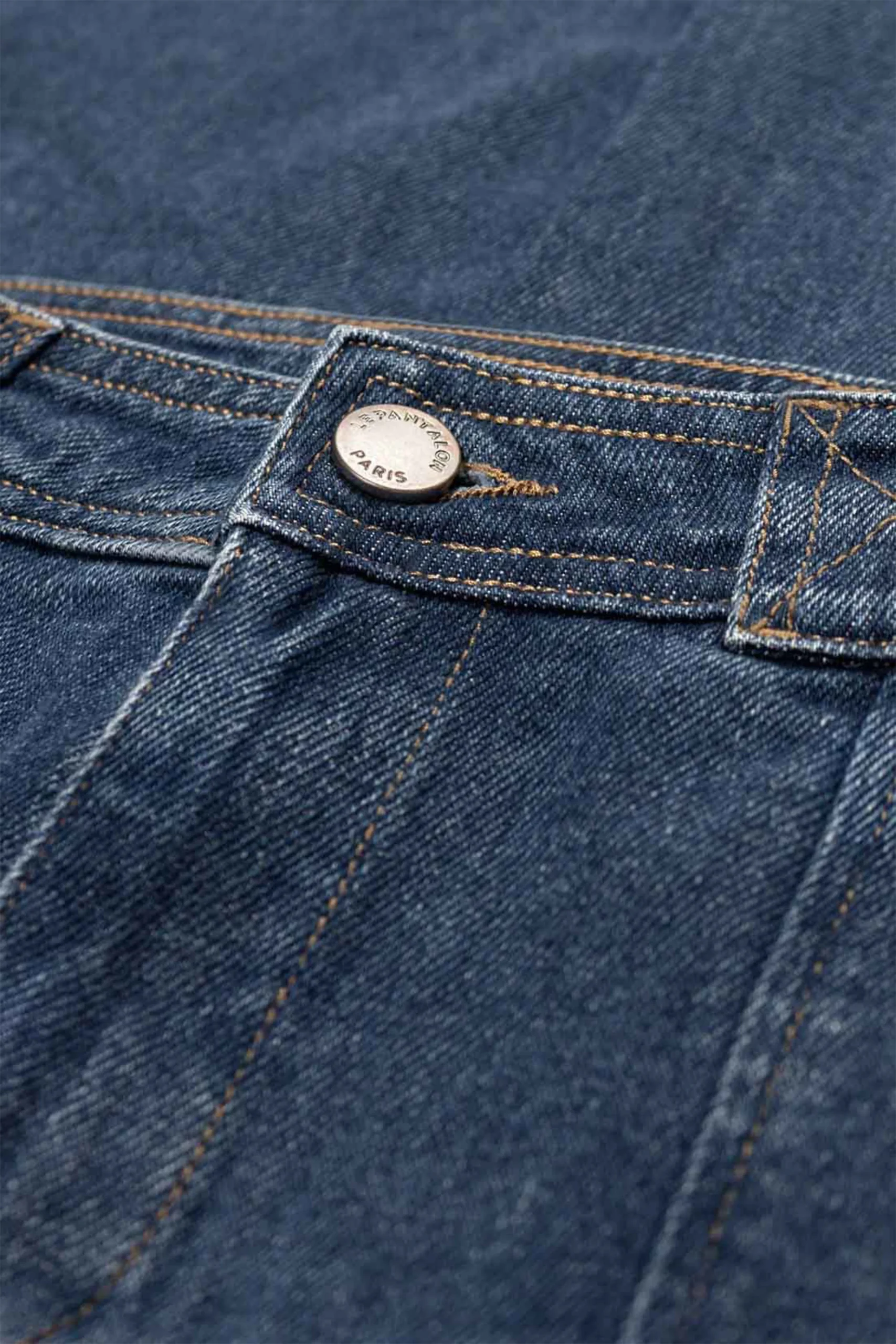 La coupe carotte c’est : une taille haute, du volume sur les hanches, sur les cuisses et des jambes ajustées jusqu’aux chevilles. Inspiré du style workwear, ce jean c’est aussi des finitions visibles et assumées : on a choisi une couture épaisse qui court le long de la jambe, des surpiqûres contrastées et une longueur 7/8ème. Mais choisir LePantalon, c’est aussi choisir une autre vision de la mode : un tissu certifié GRS & OEKO-TEX en coton biologique, et une production au Portugal. Autant de choix qui se veulent être des pas en avant pour une mode plus raisonnée.