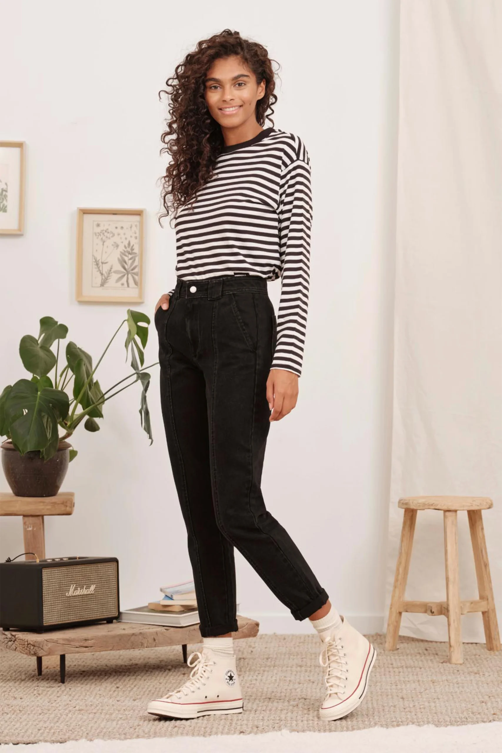 Vous connaissez peut-être le Jean boyfriend ? Le Jean girlfriend est une coupe encore plus précise, très légèrement loose mais pas trop. Mais choisir LePantalon, c’est aussi choisir une autre vision de la mode : un tissu certifié GOTS & OEKO-TEX, en coton biologique, et une production au Portugal.