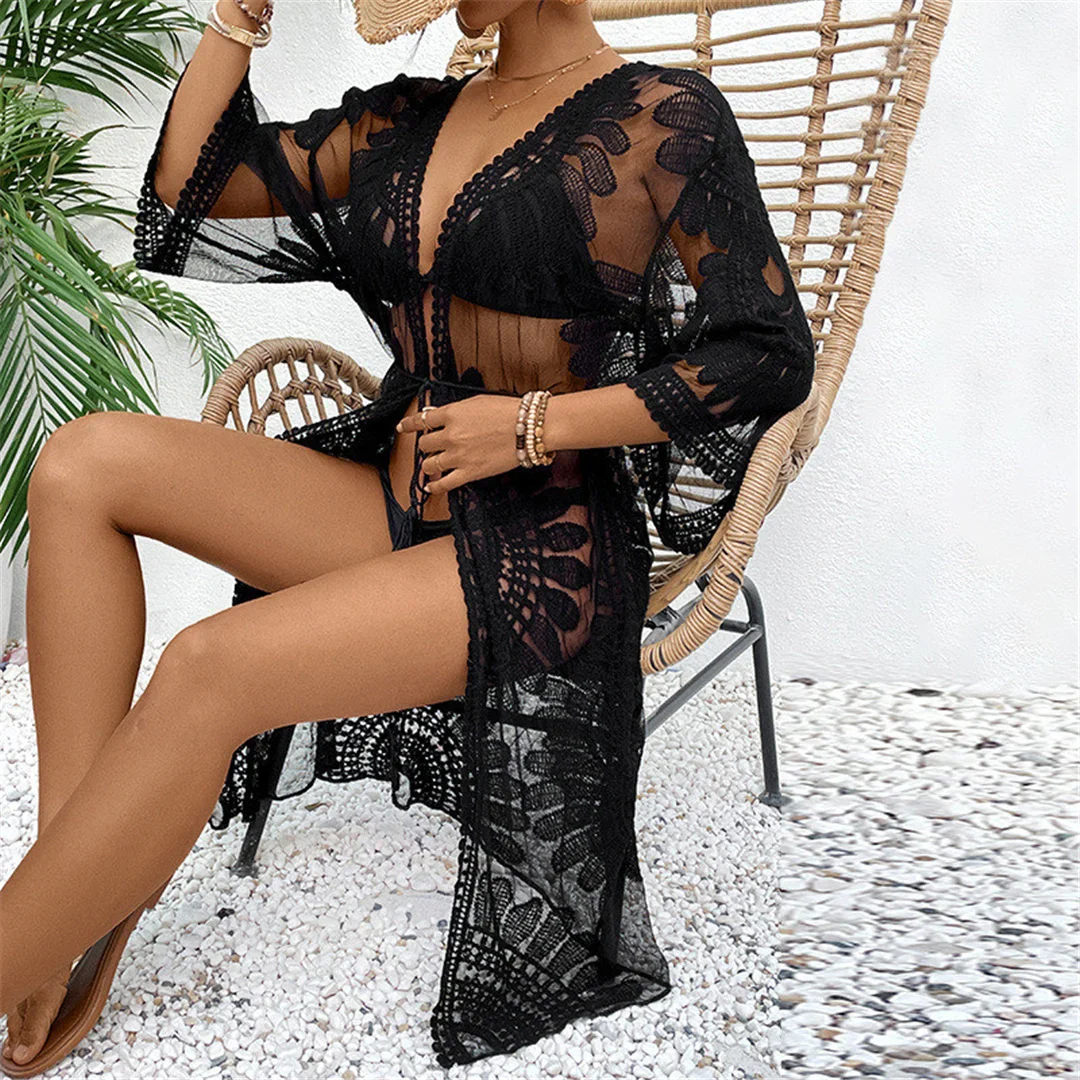 - Ajoutez une touche d’élégance à vos journées ensoleillées avec ce magnifique kimono de plage en mousseline brodé.