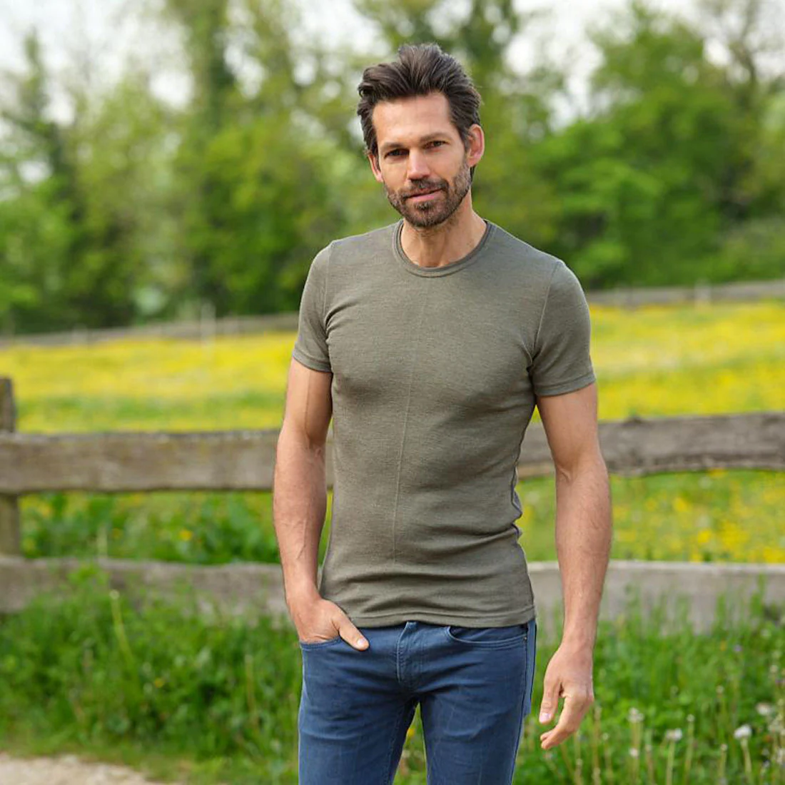 Maillot à Manches Courtes pour Homme – Laine Mérinos et Soie