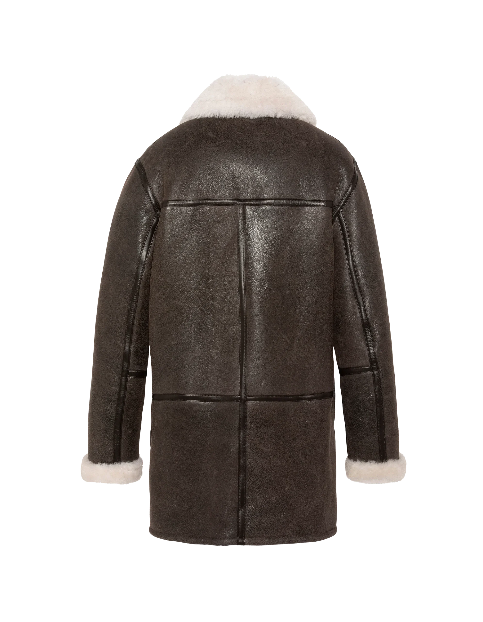 Idéal pour votre hiver, ce manteau mi-long en mouton double face s’inspire des blousons aviateurs.