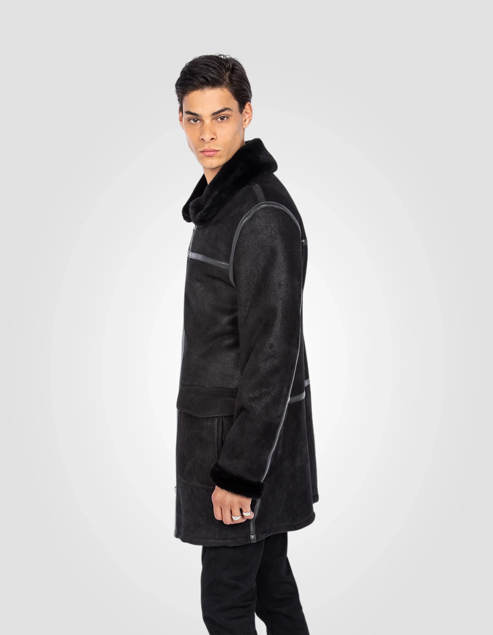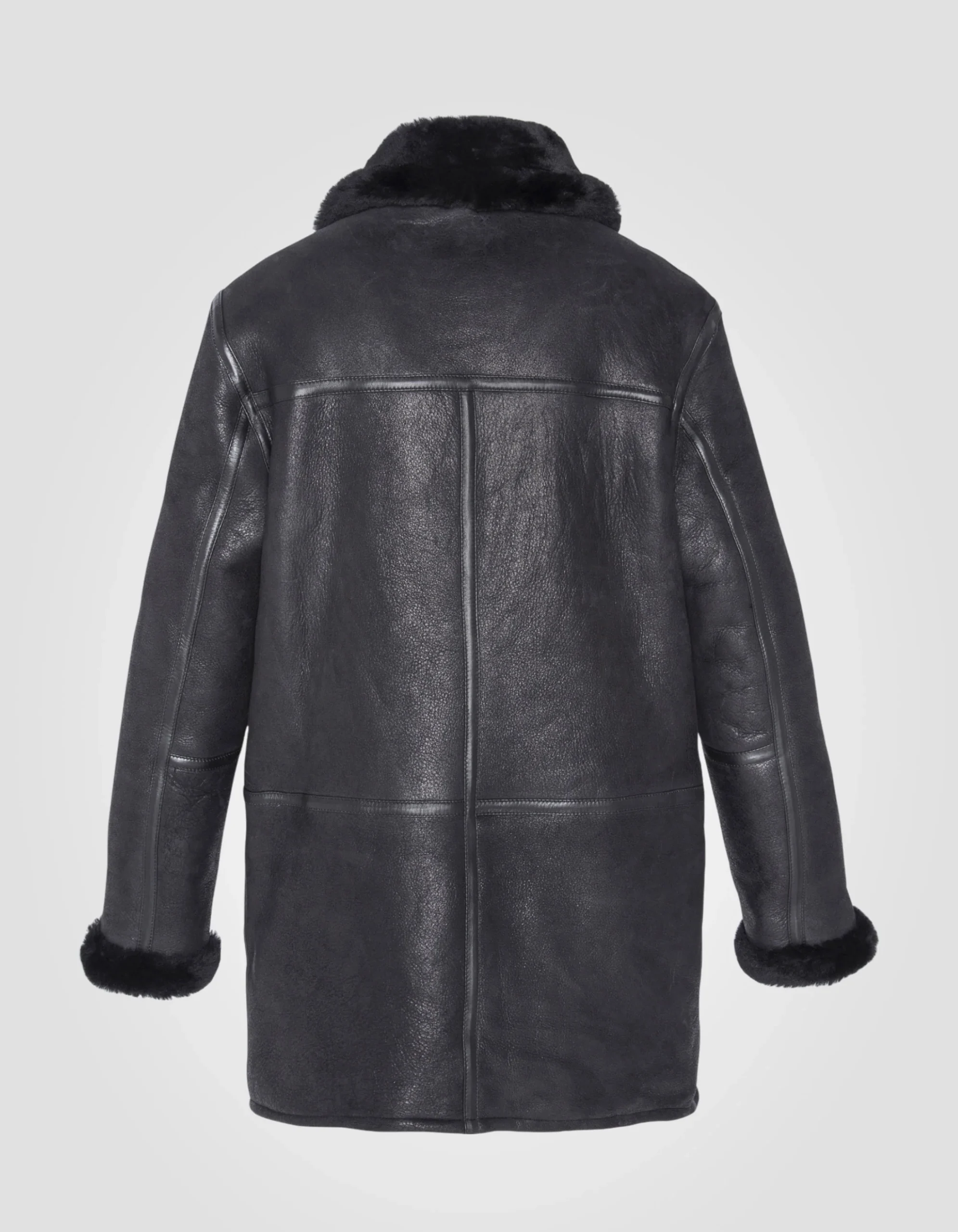 Idéal pour votre hiver, ce manteau mi-long en mouton double face s’inspire des blousons aviateurs.