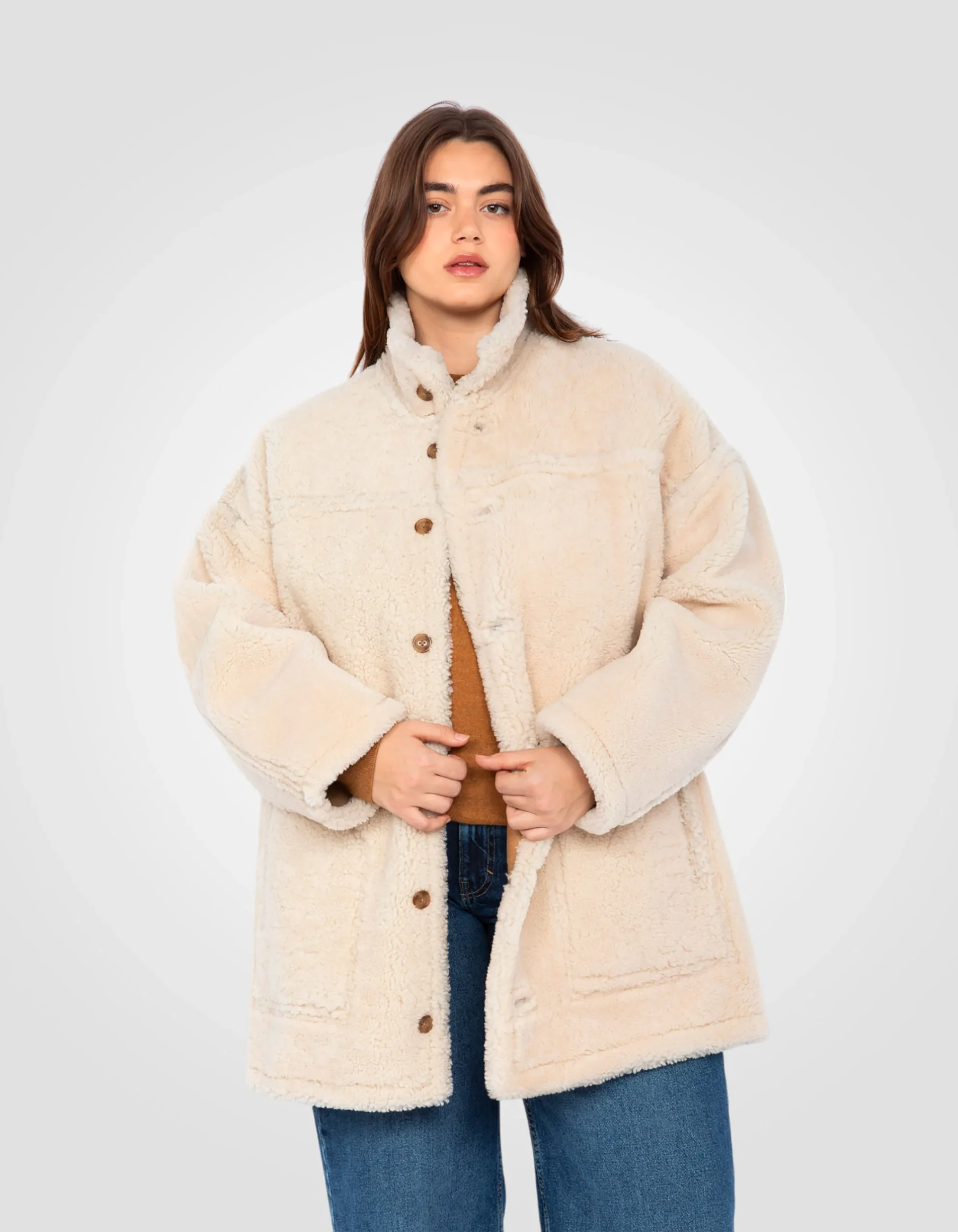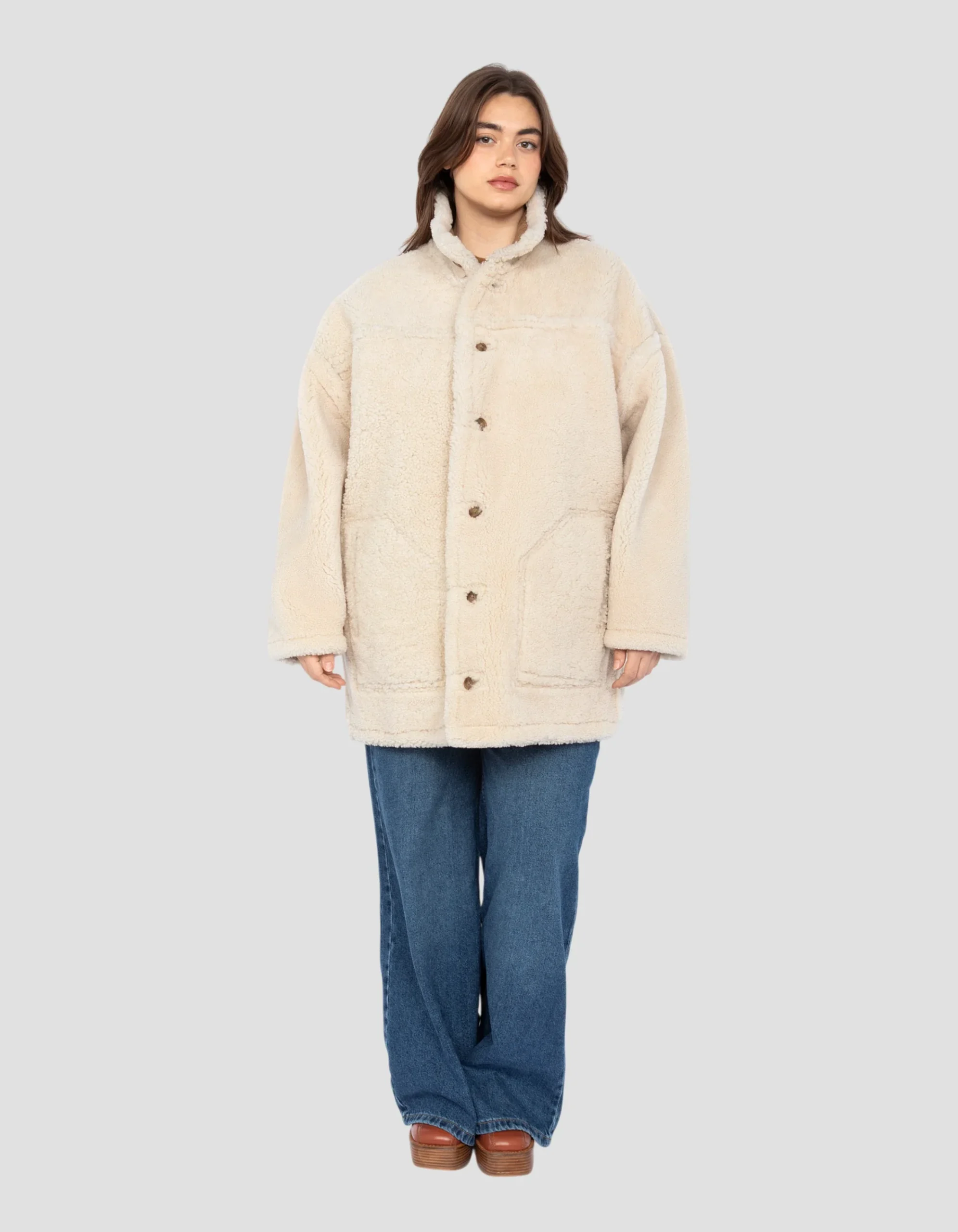 Manteau long réversible, mouton double face