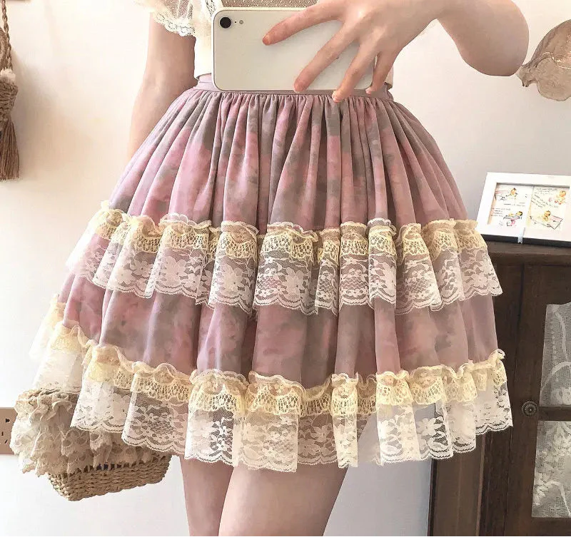 Cette Mini-Jupe Japonaise Lolita allie délicatesse et fantaisie avec ses volants légers, ses motifs romantiques et sa coupe évasée, parfaite pour un look à la fois doux, espiègle et raffiné !